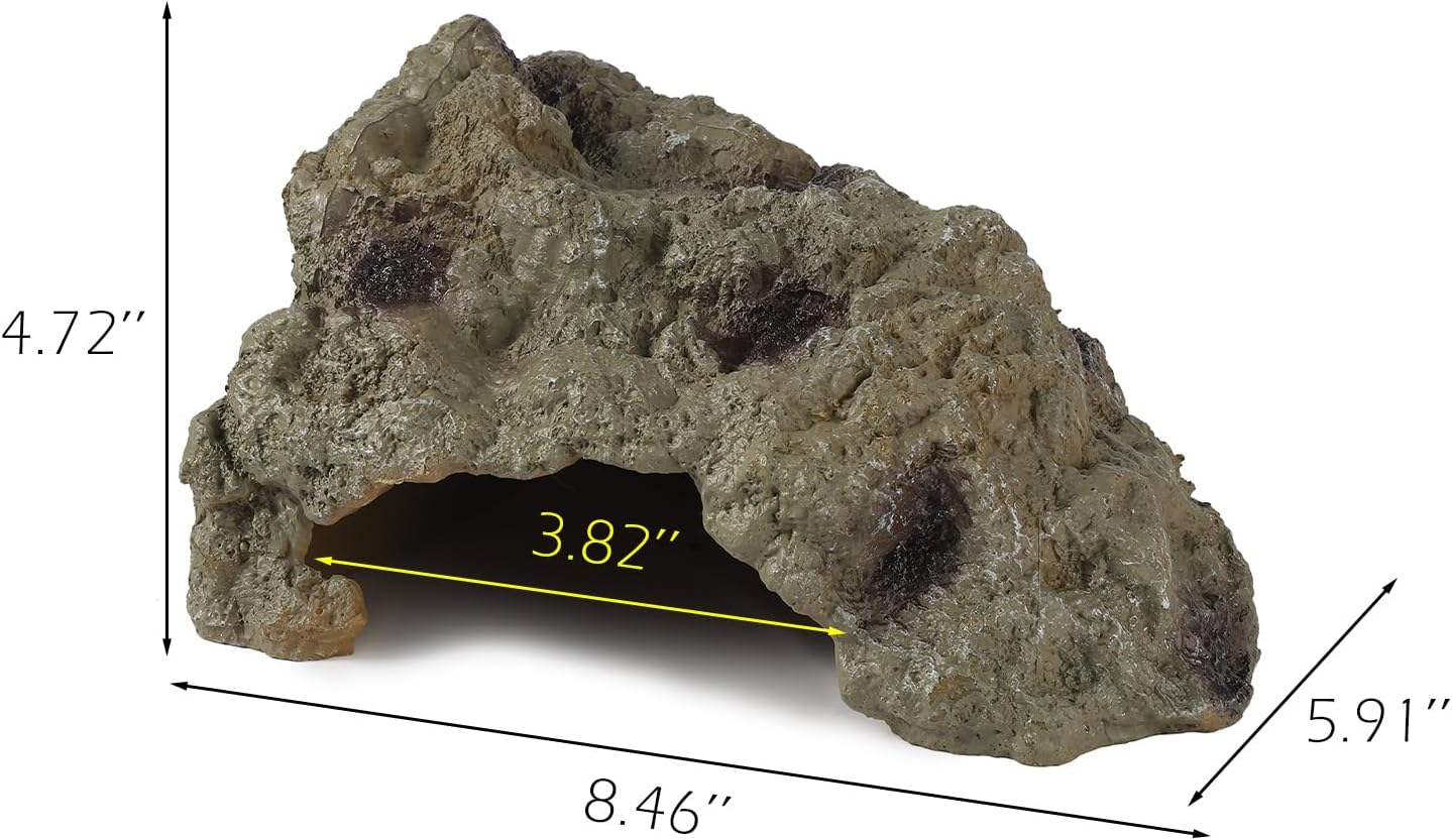 - True to Nature Reptile Rock Hide Cave - reptile hides and caves makes a great reptile house and hideout, resting place for reptiles and amphibians. It’s a terrarium décor featuring realistic shape and colors of natural looks. True to natrue to be a snake hide, ball python tank accessories, leopard gecko hide, bearded dragon hide and aquarium cave, etc.