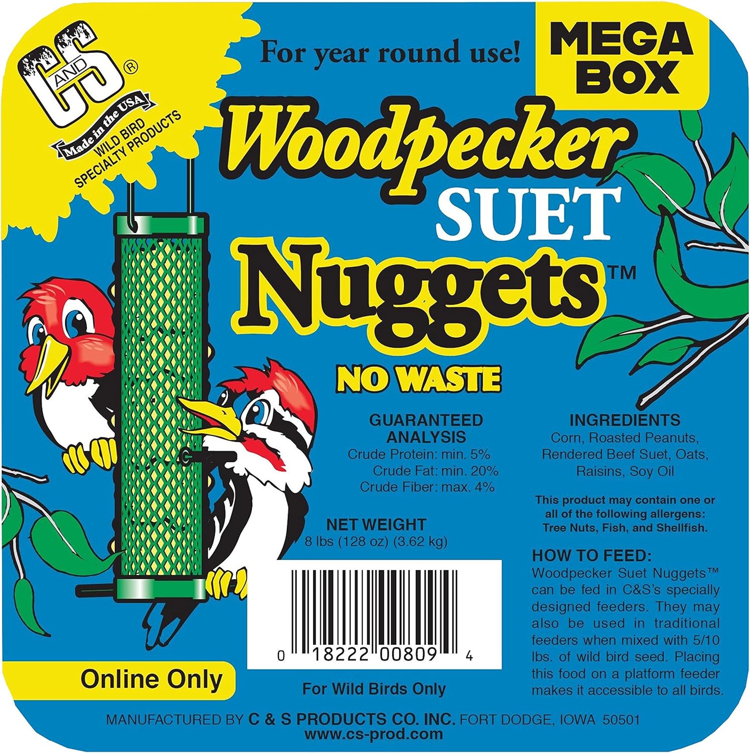 - ECONOMICAL AND EASY TO USE compared to traditional seeds. C&S Woodpecker Suet Nuggets combined with a wire feeder offer a great value for todayβs wild bird feeding customer.