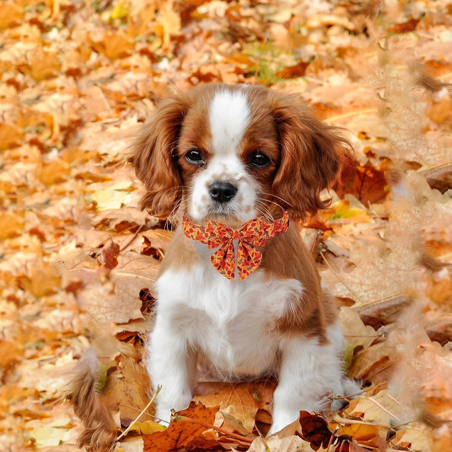 Lionet Paws Dog Collar with Bowtie - Cute Cotton Adjustable Fall Bowtie Dog Collar with Metal Buckle for Small Medium Large Dog Girl Boy Gift, XL, Neck 16-26in