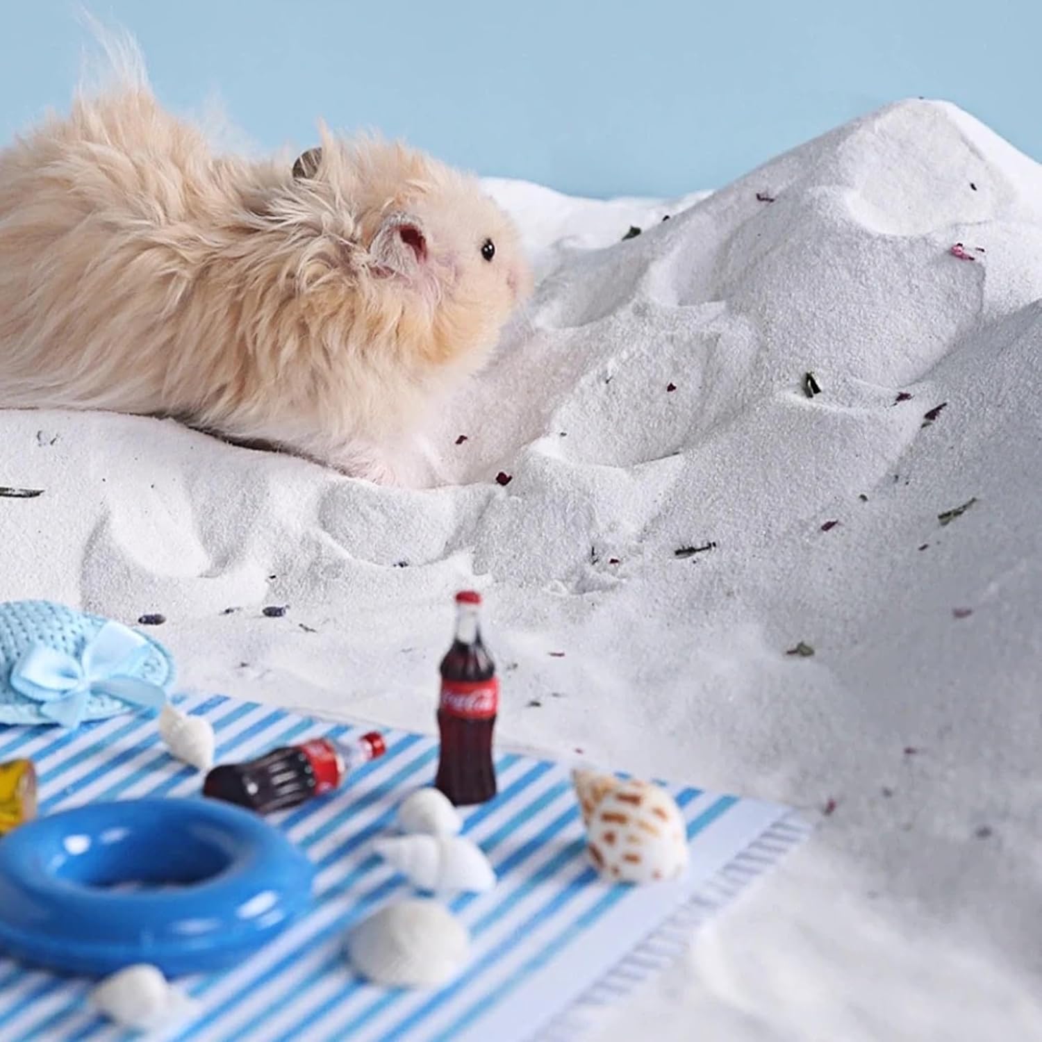 - Mental Stimulation: Beyond cleanliness, our sand provides mental stimulation, allowing your hamster to dig, burrow, and roll, keeping them entertained and beating boredom.