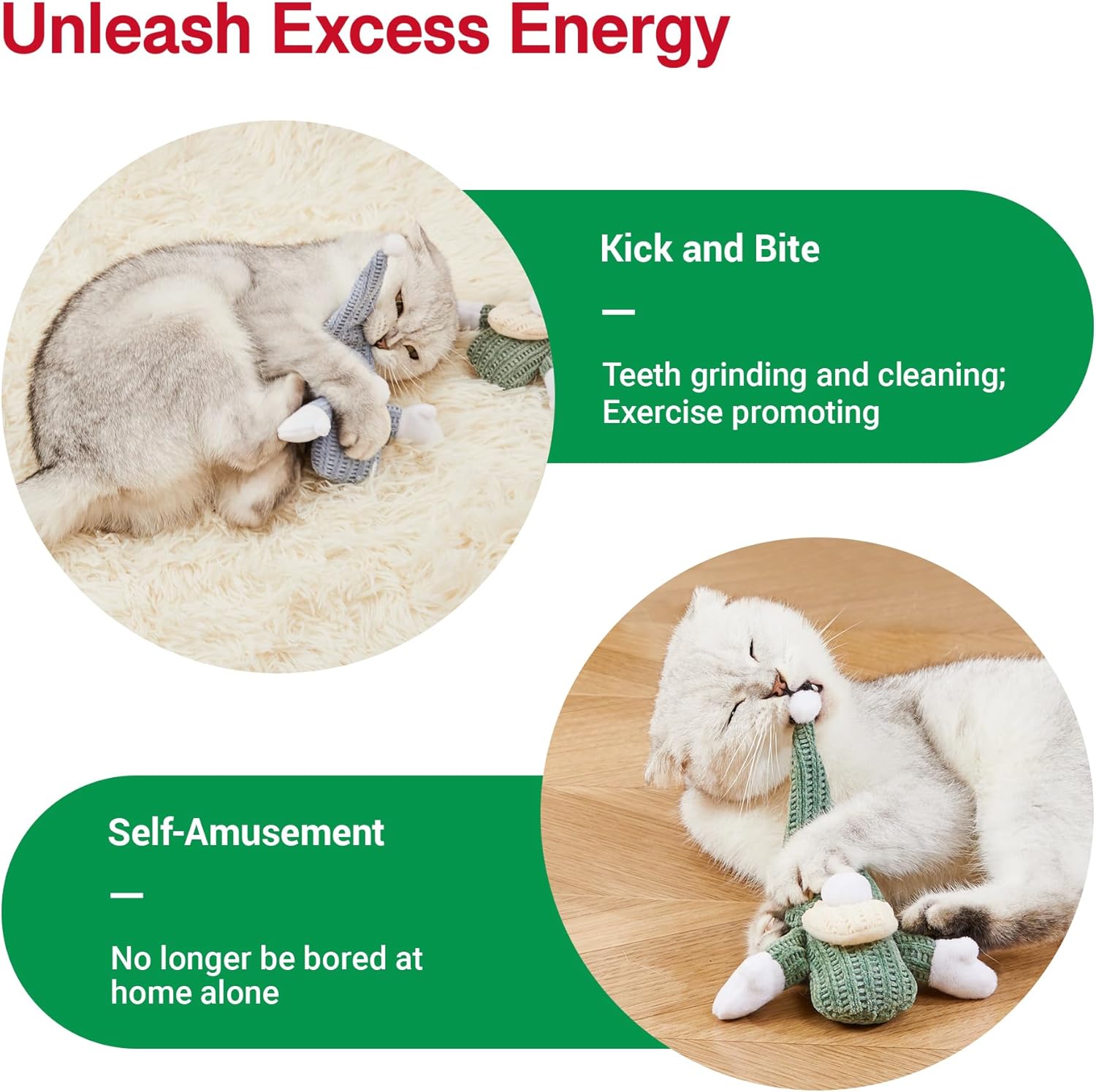 - Catnip & Silvervine: Contain organic cat nip and silvervine inside, this toy is a chewable delight for any cat. Encourage teething kittens to bite and claw at it, ensuring hours of interactive fun.