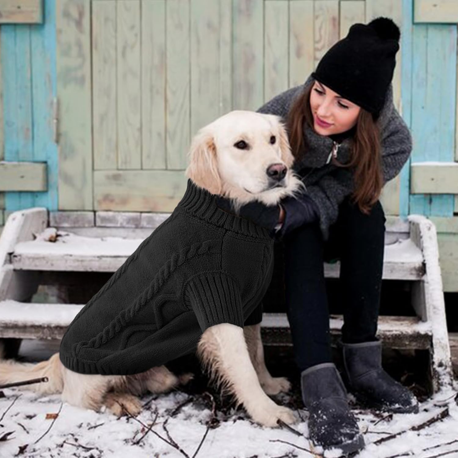- THICK & WARM KNIT SWEATER: The dog's turtleneck pullover sweater is made of high density acrylic yarn that is comfortable, soft, warm and easy to care. The cable knit sweater is the cute winter clothes for your dog.