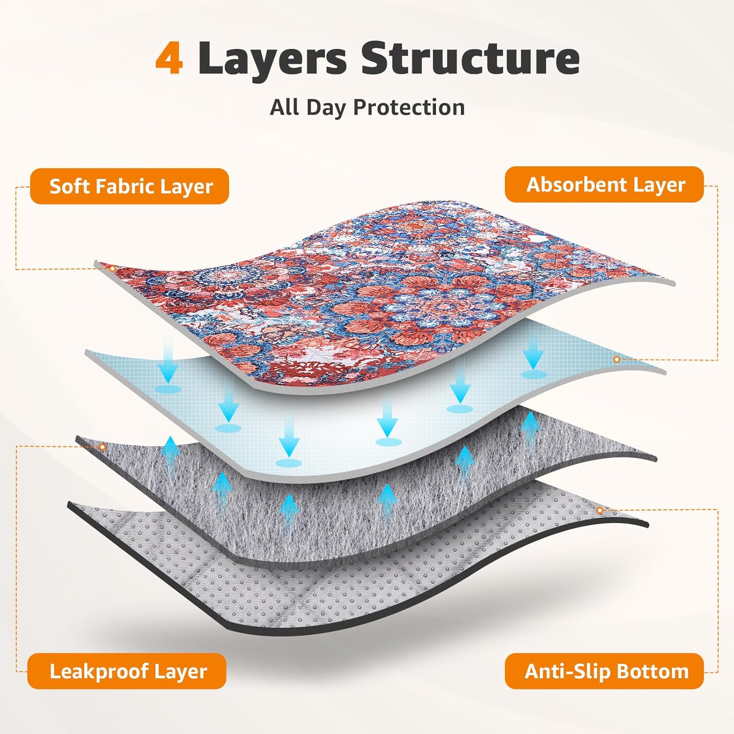 - SUPER ABSORPTION & LEAKPROOF: LOOBANI washable pee pads for dogs is made from four layers of material, which is highly water-absorbent and leak-proof. The absorbent layer quickly absorbs dog urine, waterproof layer can effectively prevent liquid leakage leaving odor. Keep the floor or carpet clean and dry for dogs