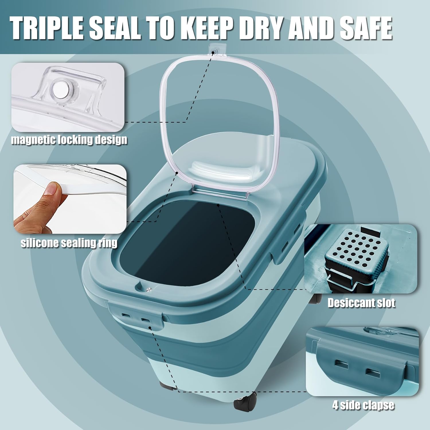 Collapsible Dog Food Storage Container with Lids, Airtight Rice Flour Cereal Sugar Bin Bucket, 20 25 30 Lbs Kitchen Accessories Holder Cat Pet Gift Travel Essentials Must Haves Gear Stuff Necessities