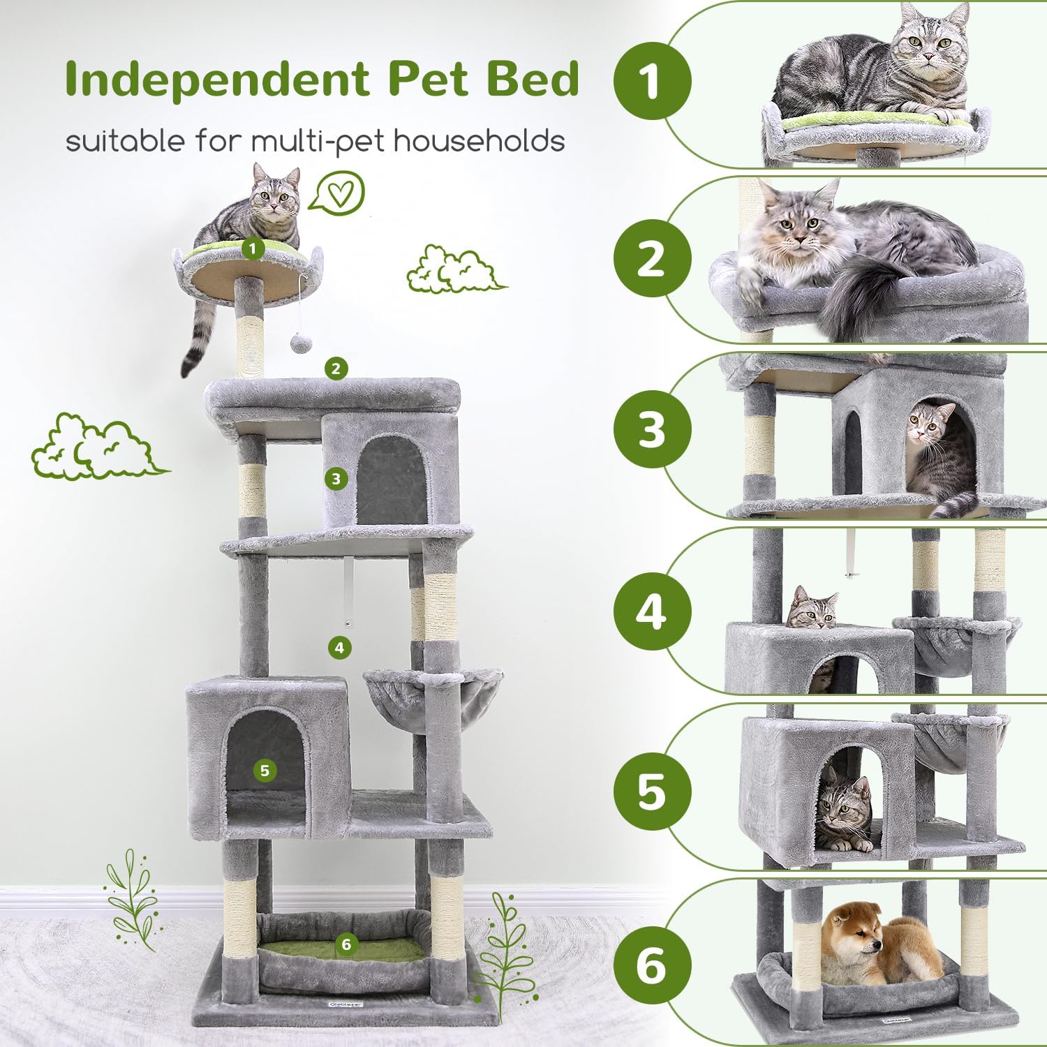 - BONUS INDEPENDENT PET BED- Featuring a separate pet bed(17.7"x 13.4") that is not only suitable for cats but can also be used independently. it can be placed under the cat tower or in your cat's favorite spot. It is also suitable for multi-pet households, allowing other pets to enjoy