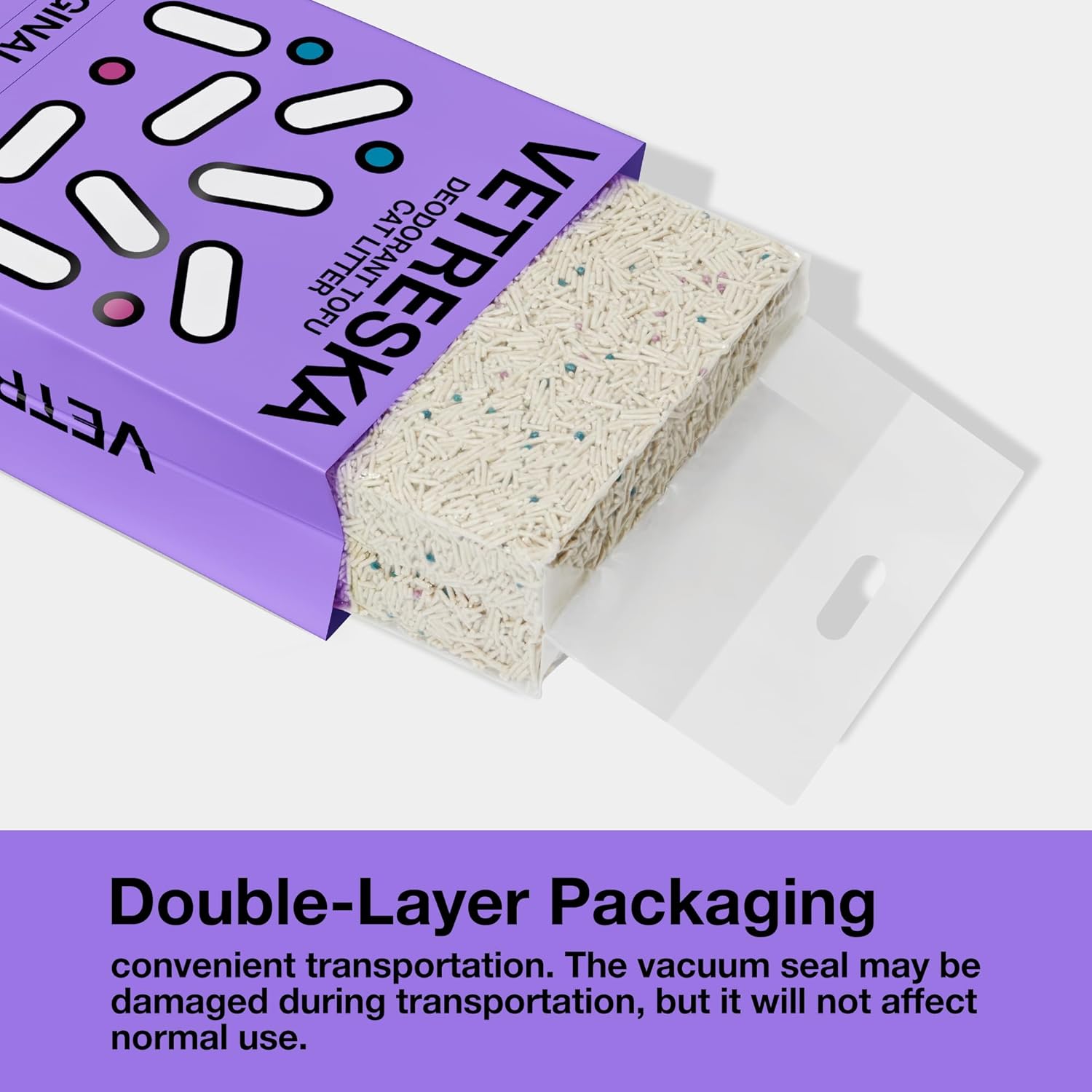 - 【Vacuum Packaging】Our tidy cat litter is packaged in an inner vacuum package for secure transportation and easy storage. When you receive the package, it may initially appear solid like a brick, but simply open the inner bag and allow some air in. Within moments, the litter will loosen up and be ready for use