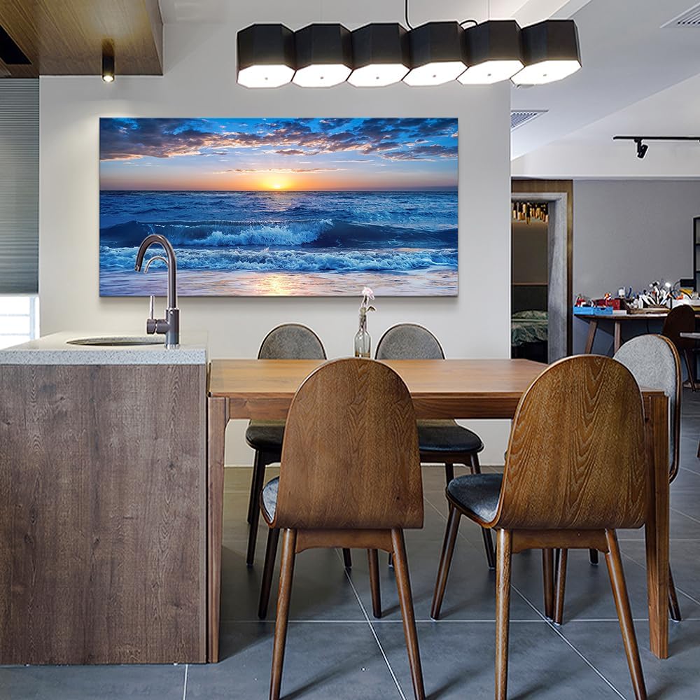 Lapremoly Framed Canvas Wall Art - Large Blue Ocean Beach Wall Painting for Living Room, Bedroom & Office - 24" x 48"