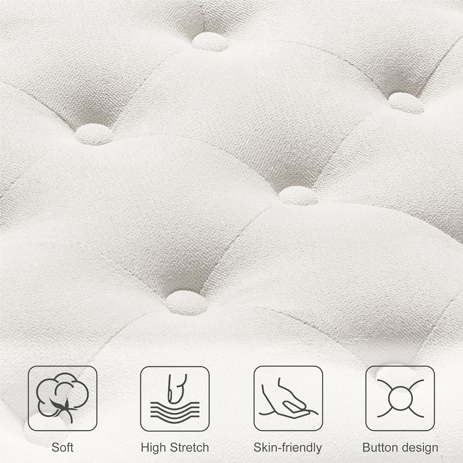 - COMFORTABLE AND SAFE DESIGN: This storage ottoman is made of linen fabric and filled with high-density foam on the top, which is comfortable to sit, soft and lightweight and not easy to deform. Safety hinges on the upholstered storage bench lid ensure smooth, safe operation and easy access to items.