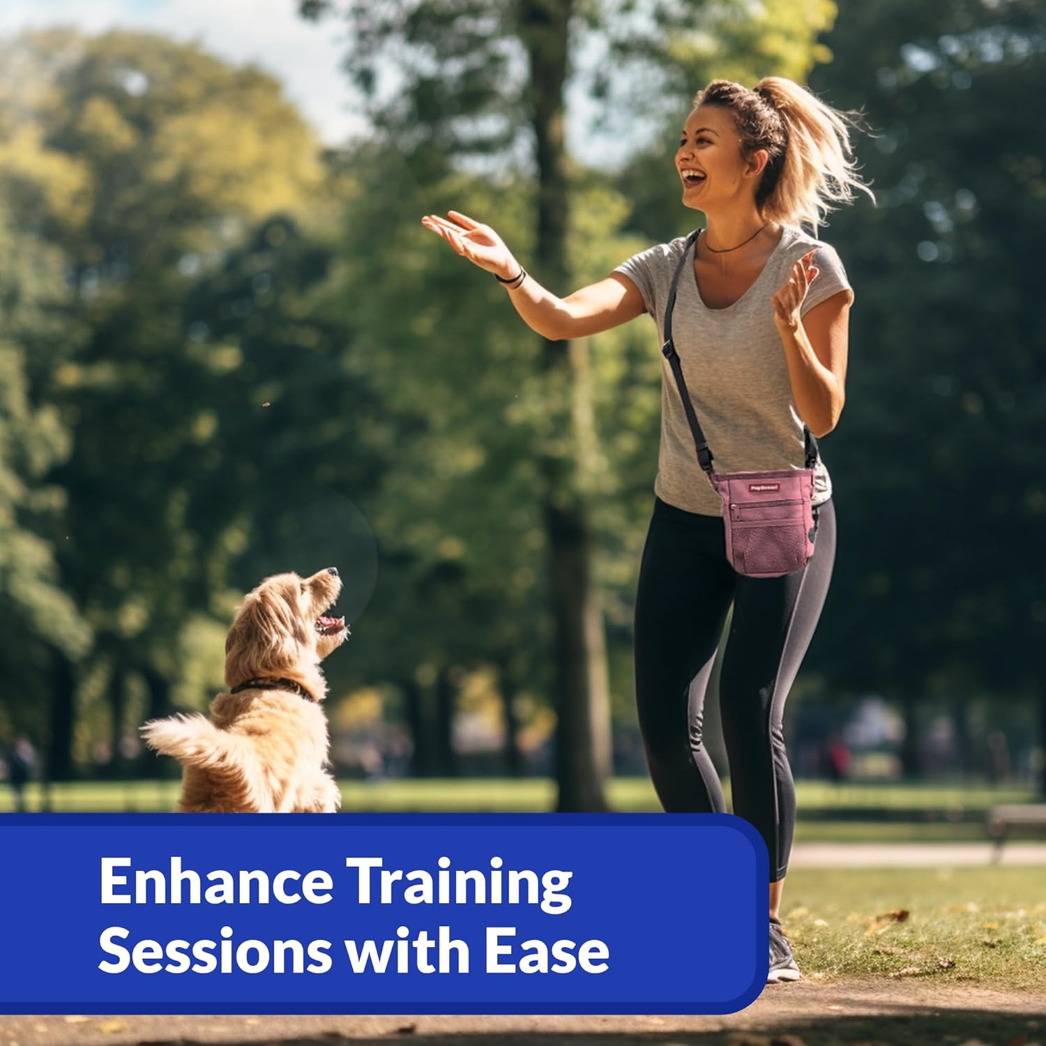 Dog Treat Pouch, Durable Oxford Polyester, No-Spill Magnetic Closure, Treat Pouches for Pet Training with Metal Clip, Waist Belt, Adjustable Strap, Poop Bag Dispenser (Light Pink)