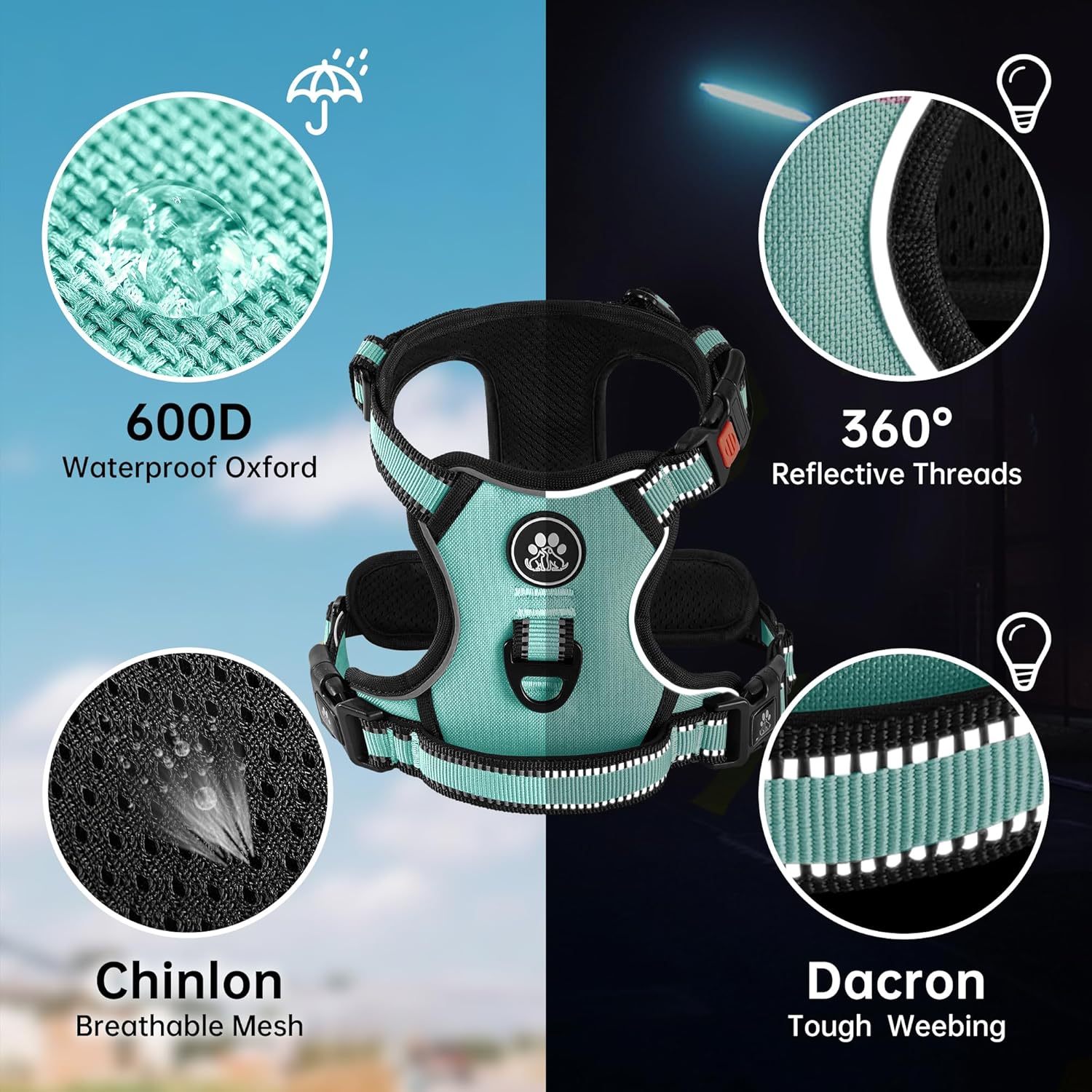 NESTROAD No Pull Dog Harness,Adjustable Oxford Dog Vest Harness with Leash,Reflective No-Choke Pet Harness with Easy Control Soft Handle for Large Dogs(Large,Turquoise)