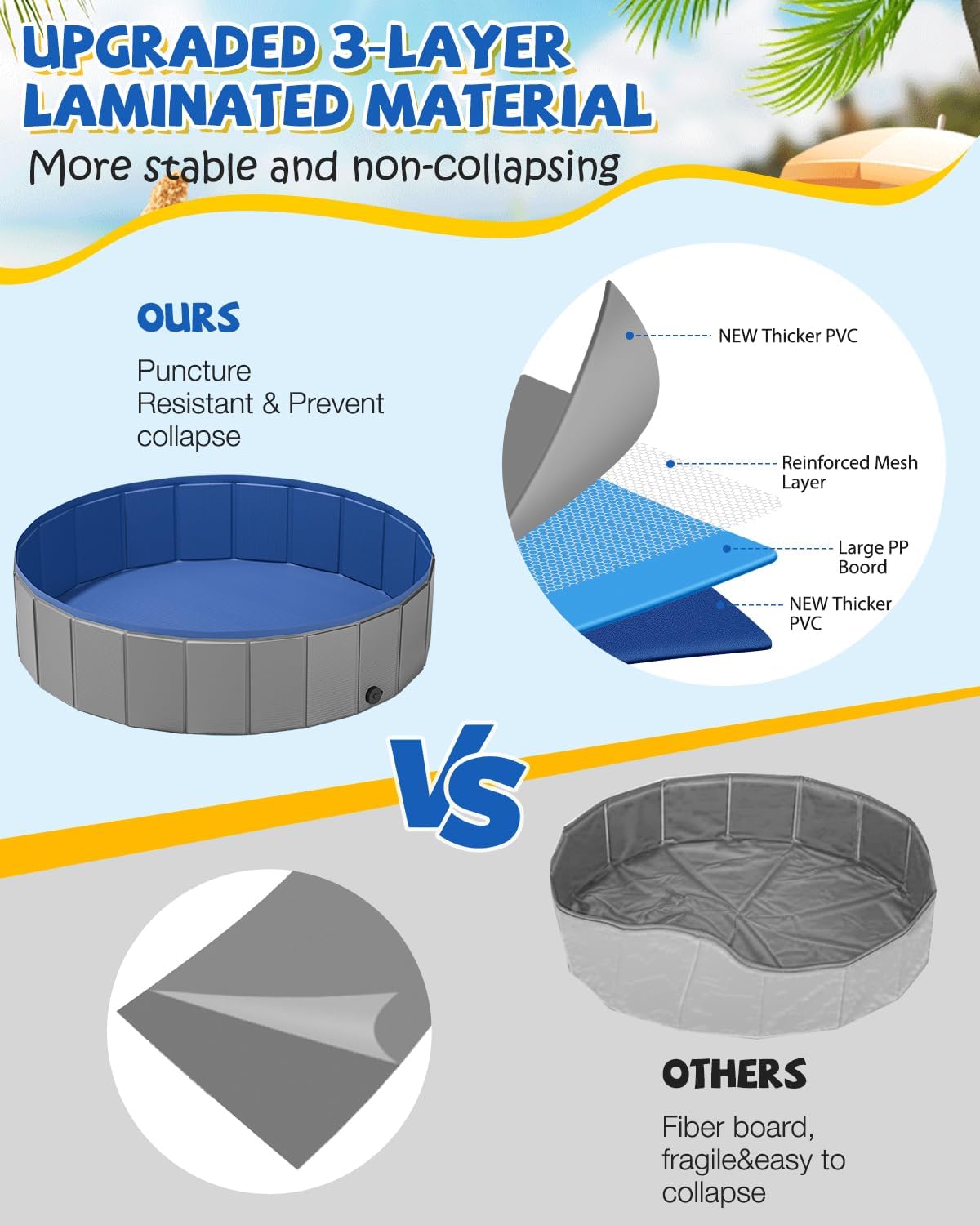 - Warm Tip:To protect the dog pool from scratches, trim your dog’s nails before use—ideal for excited pups who love to dig and splash.