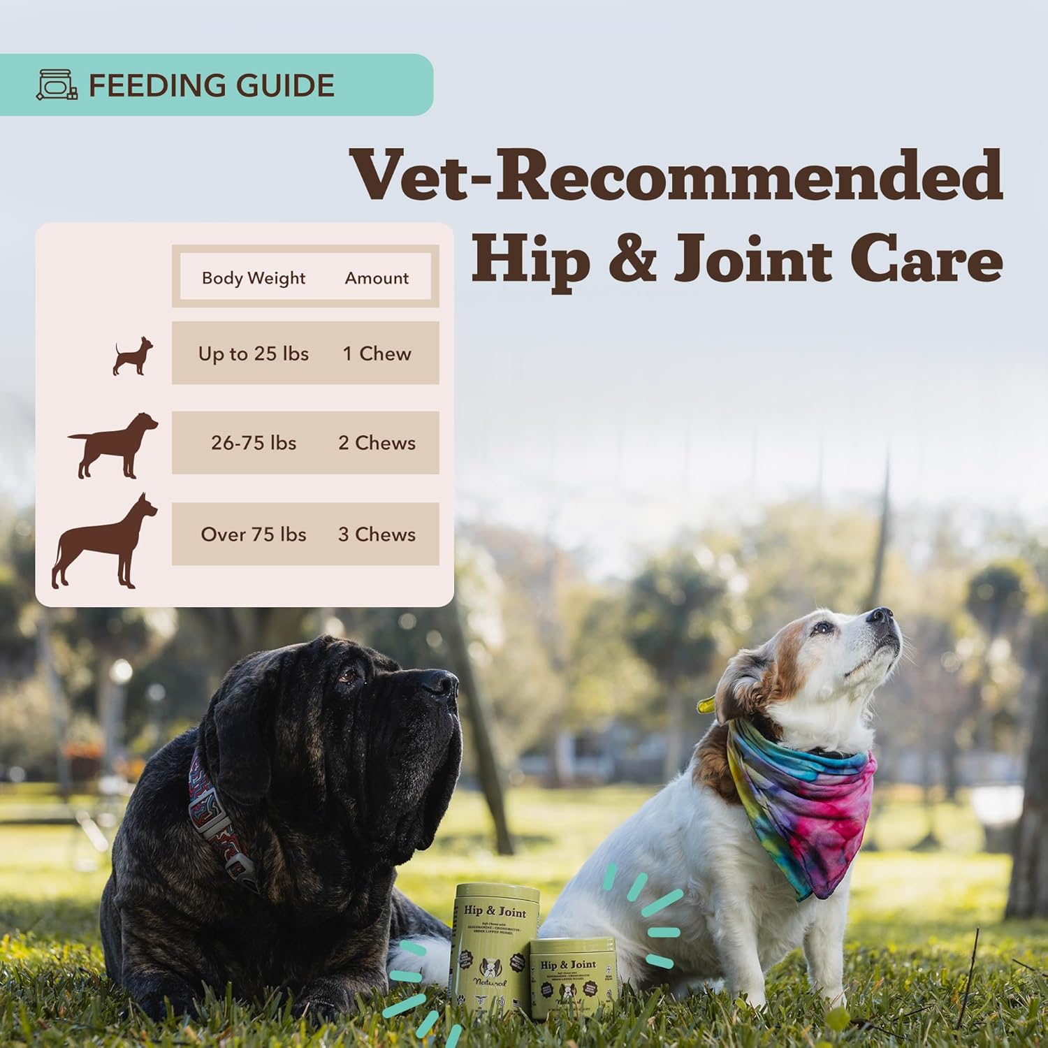 • USAGE MADE SIMPLE: Experience hassle-free administration with our easy-to-follow instructions, ensuring effective use for maximum joint support and overall vitality. For dogs under 25 lbs, give 1 chew per day; for dogs 26-75 lbs, administer 2 chews per day; for dogs over 75 lbs, provide 3 chews per day to support their joint health.