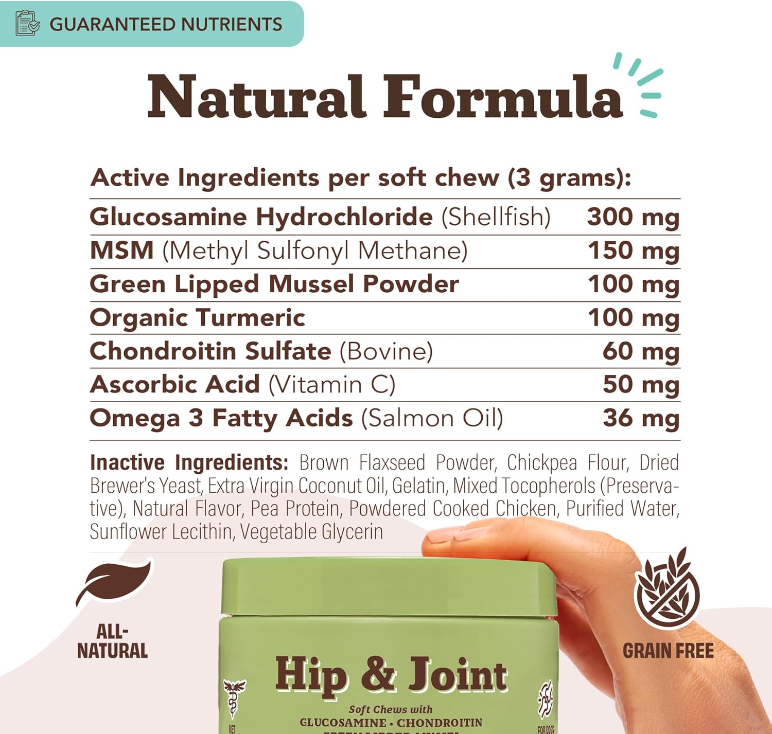 • CERTIFIED QUALITY ASSURANCE: Our Natural Dog Company Hip and Joint Supplement Dogs is produced under strict safety protocols in an FDA registered and NASC preferred facility, making each chew a trusted component of your dog’s health regimen.