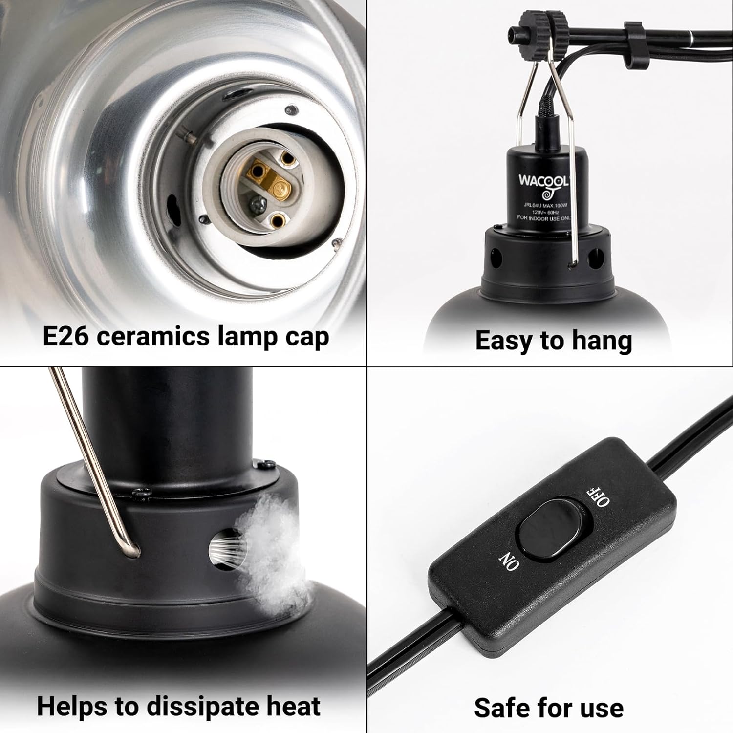 - Versatile Compatibility: This reptile lamp fixture is suitable for a wide range of reptiles, including tortoises, lizards, snakes, and more. It is also compatible with different heat lamp bulbs with E27 socket such as incandescent bulbs, ceramic heat emitters, and infrared bulbs (not included).(MAX.150W)