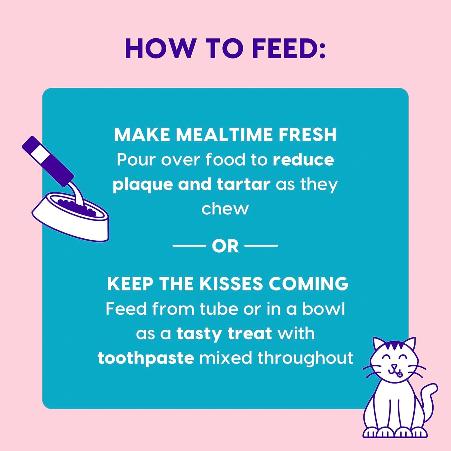 - Pour over food to reduce plaque and tartar as they chew.