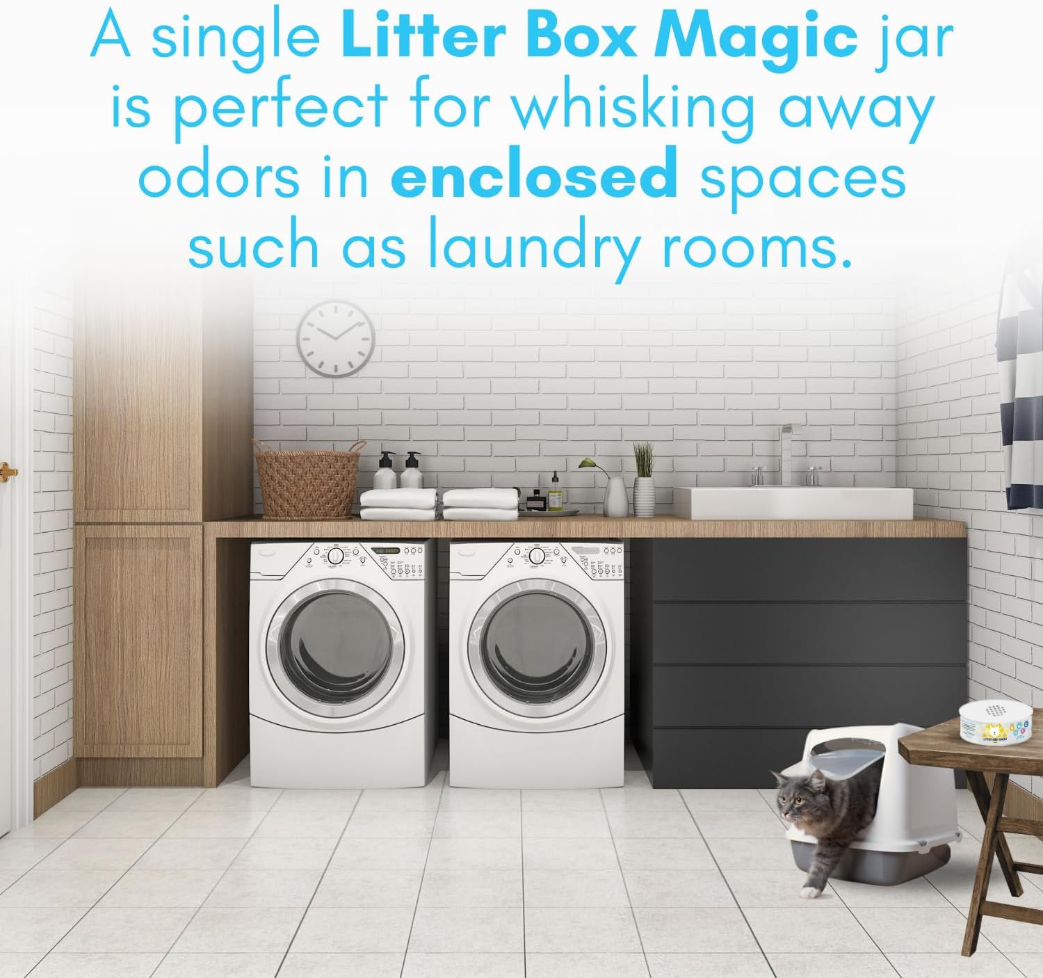 - KEEP LITTER BOX ODORS UNDER CONTROL – Our cat box deodorizer pro-grade strength formula is designed for litter box odor control, lasting up to 30 days. Simply twist open the jar and let it do its job—ideal for bathrooms, closets, enclosed basements, and small, poorly ventilated areas. Its continuous odor-inhibiting properties can help with intense cat smells for 30 days.