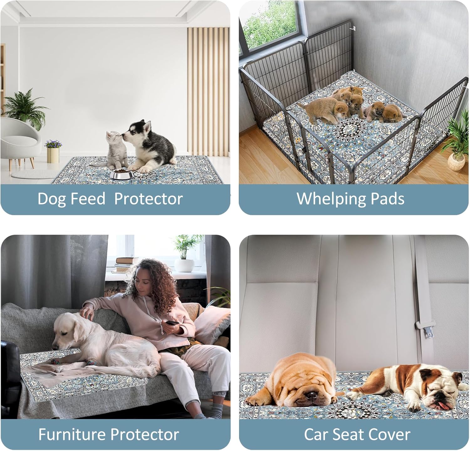 - ๐พใ๐๐ง๐ก๐๐ง๐๐๐ ๐๐จ๐ง-๐๐ฅ๐ข๐ฉ ๐๐๐ซ๐๐จ๐ซ๐ฆ๐๐ง๐๐ใUpgraded with non-slip PVC rug at the bottom, this mat firmly stay on the floor or crate, ensuring the safety of your dog. Not only do puppy reusable pee pads protect against scratches and dirt, they also feature stylish tie-dye and bohemian designs that add a decorative touch to your home.