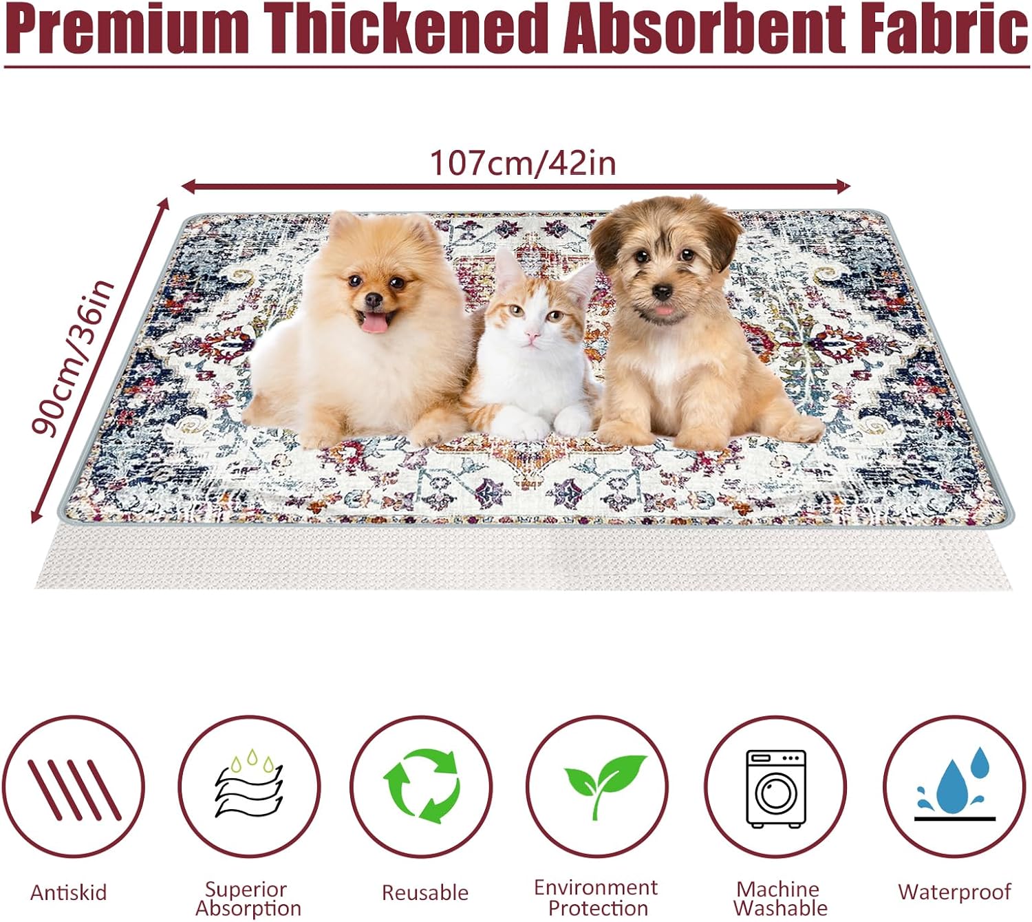 - ๐พใ๐๐ง๐ก๐๐ง๐๐๐ ๐๐จ๐ง-๐๐ฅ๐ข๐ฉ ๐๐๐ซ๐๐จ๐ซ๐ฆ๐๐ง๐๐ใUpgraded with non-slip PVC rug at the bottom, this mat firmly stay on the floor or crate, ensuring the safety of your dog. Not only do puppy reusable pee pads protect against scratches and dirt, they also feature stylish tie-dye and bohemian designs that add a decorative touch to your home.
