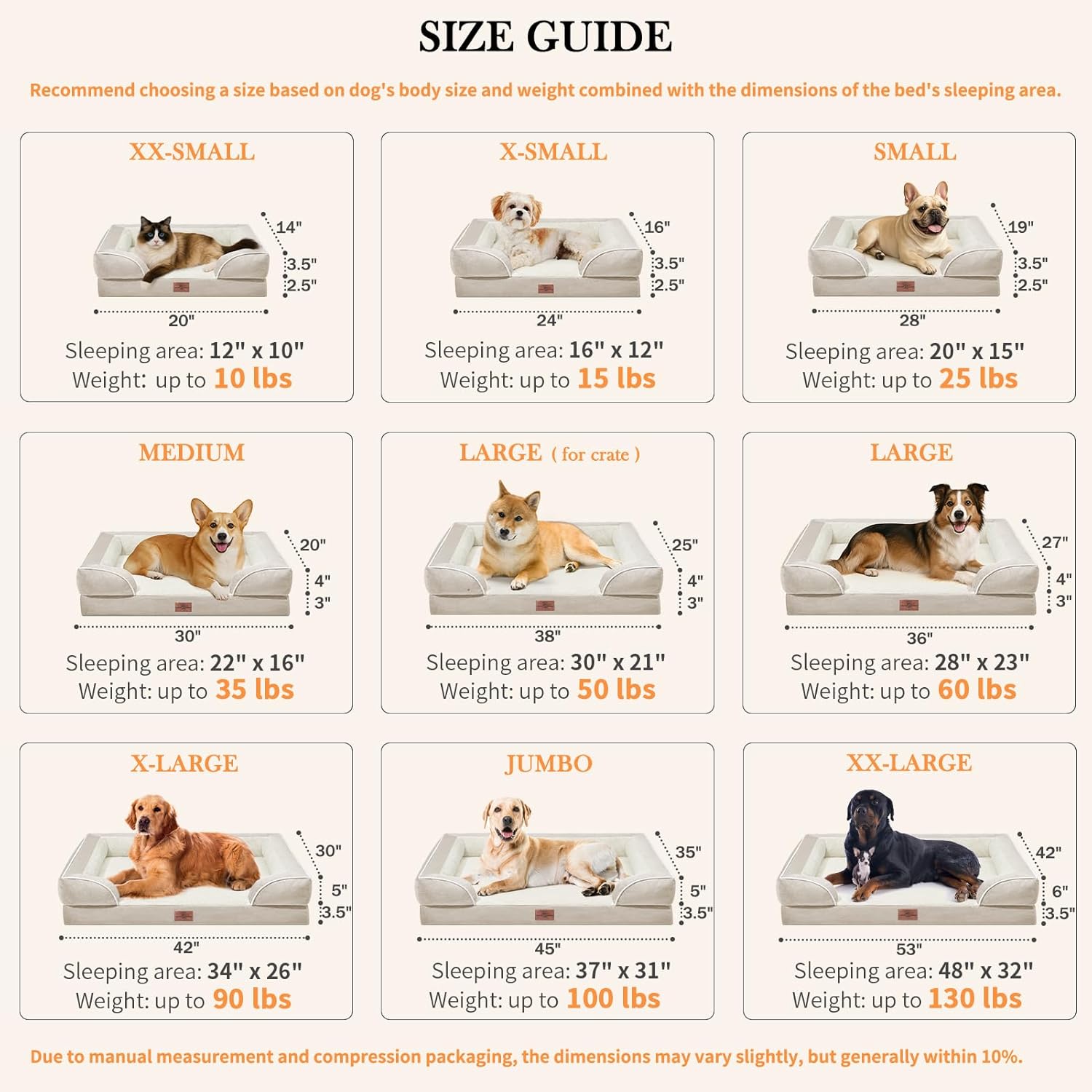 Comfort Expression Orthopedic Jumbo Dog Beds Waterproof, Extra Large Dog Beds Jumbo Breed, PV Washable Pet Sofa Couch with Removable Cover & Non-Slip Bottom(Beige)