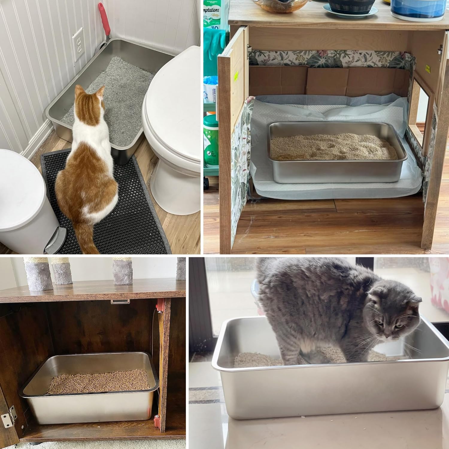 - Large Cat Litter Box for Big Cats:The stainless steel cat litter box with high sides size is L23.6*W15.7*H6 inches.Metal litter box offering plenty of space for large cats while still being suitable for cats of all sizes, the extra-large size makes it the best choice for multi-cat households.