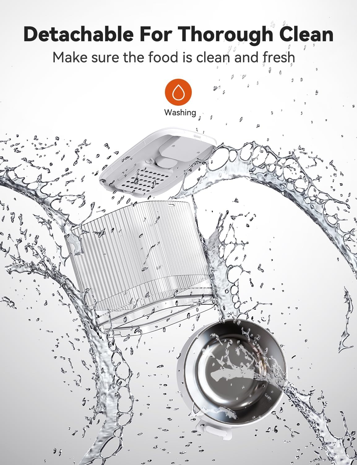 - 4L Food Storage: The automatic dog feeder has a 4L (17 cup) capacity, this automatic pet feeder reliably supplies food to your cat or small dog for several days. The anti-clog mechanism ensures a smooth and consistent food flow, so you can rest assured that your pet will remain happy and well-fed even in your absence.