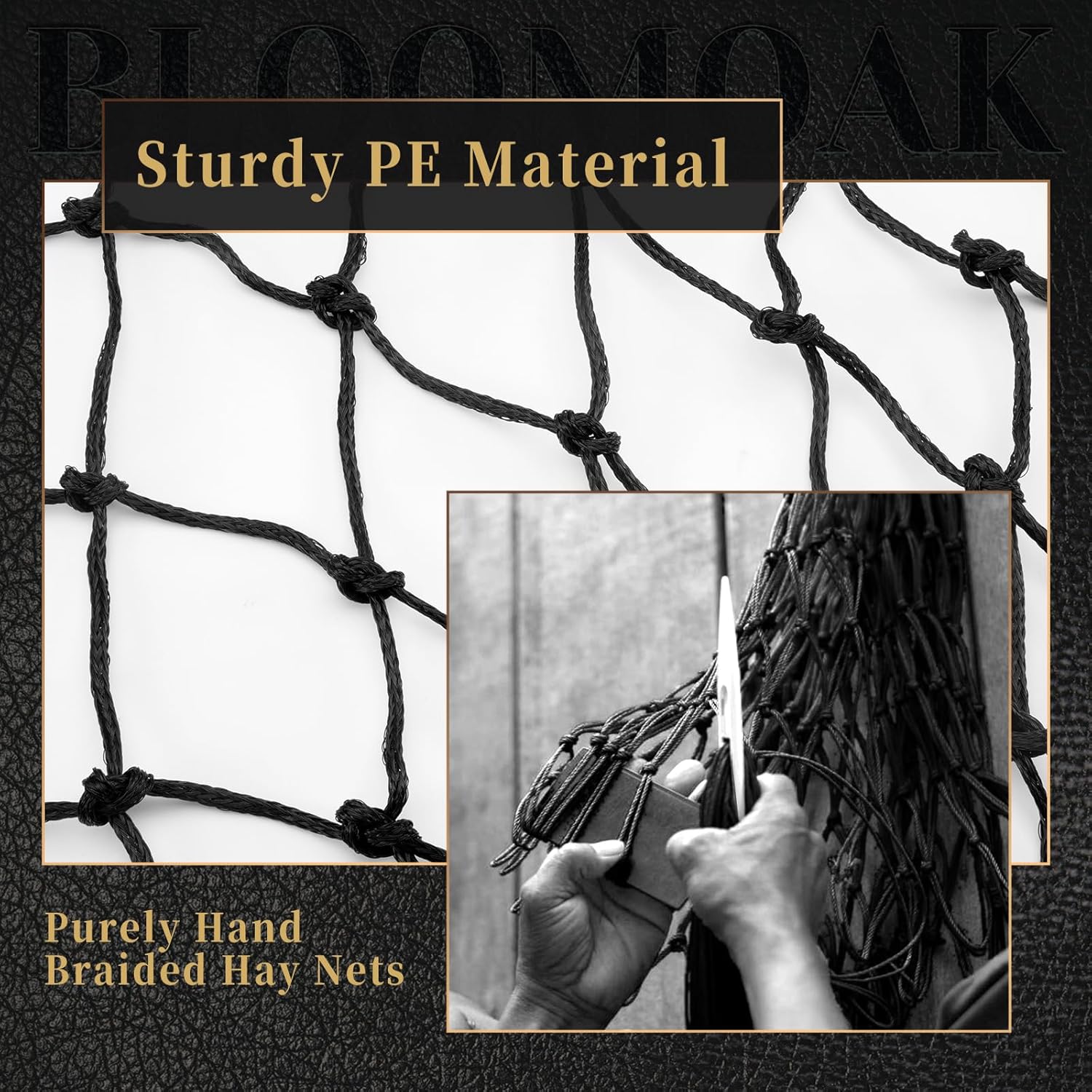 Bloomoak Slow Hay Net Feeder for Horses, Durable Soft Black PE 2String Hay Bales Bags with 2" Hole, Fit 36 * 18 * 18" Square Bale Easily…