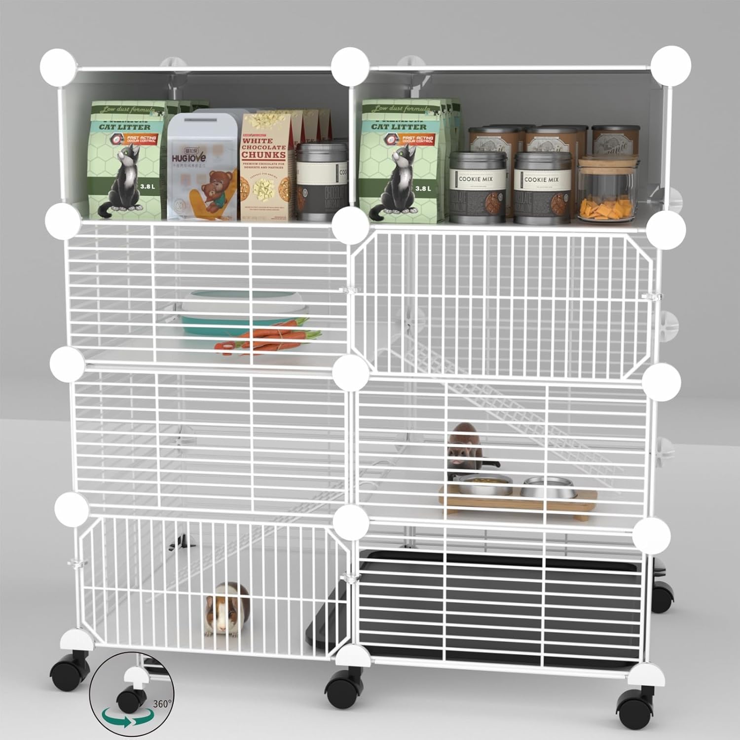 C&C Guinea Pig Cages Indoor on Wheels, 3 Tier Ferret Cage Small Animal Hideout House with Drawer & Removable Tray, Pet Playpen Fence for 1-3 Hamster Rat Chinchilla Hedgehog