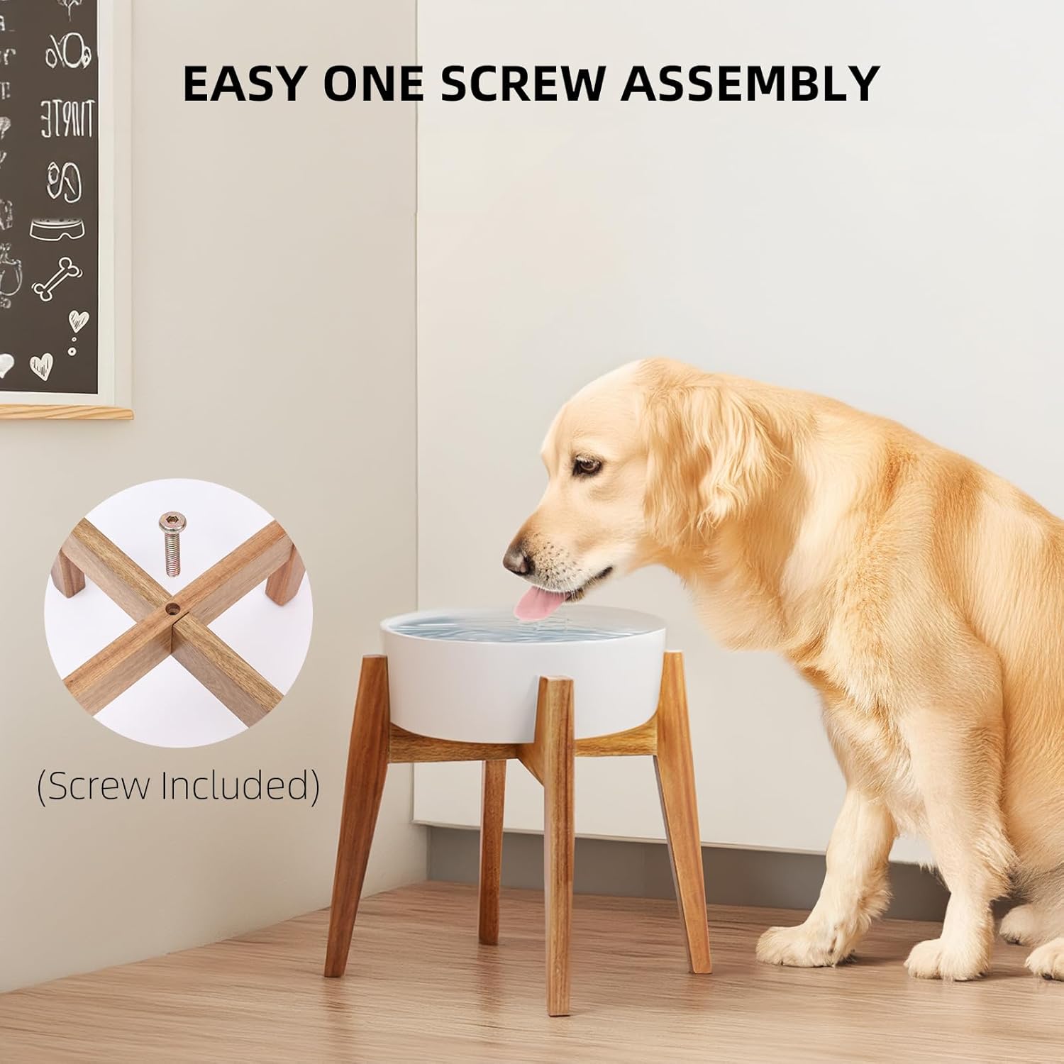 - Improved sturdy structure, this stand is constructed with solid acacia wood with an enhanced shape that keeps the bowl elevated without tripping over. It will hold the dog bowl, feeding station, slow feeder dog bowl stably.
