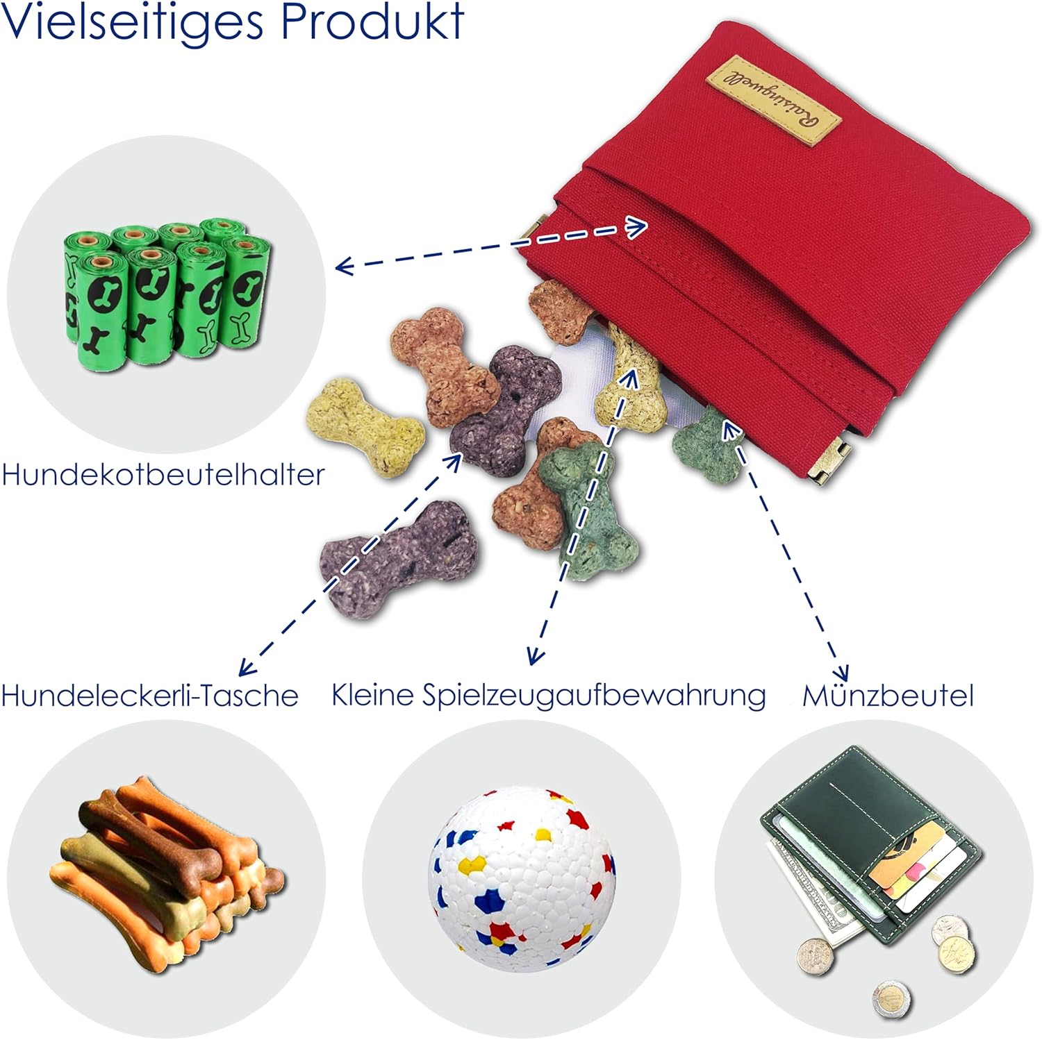 - Versatile product: Our product is equipped with a front storage pouch, perfect for carrying a few poop bags or tissues during your short trips. The stylish training pouch not only holds dog food but also accommodates small toys or serves as a coin purse. It's a versatile walking bag that meets various needs.