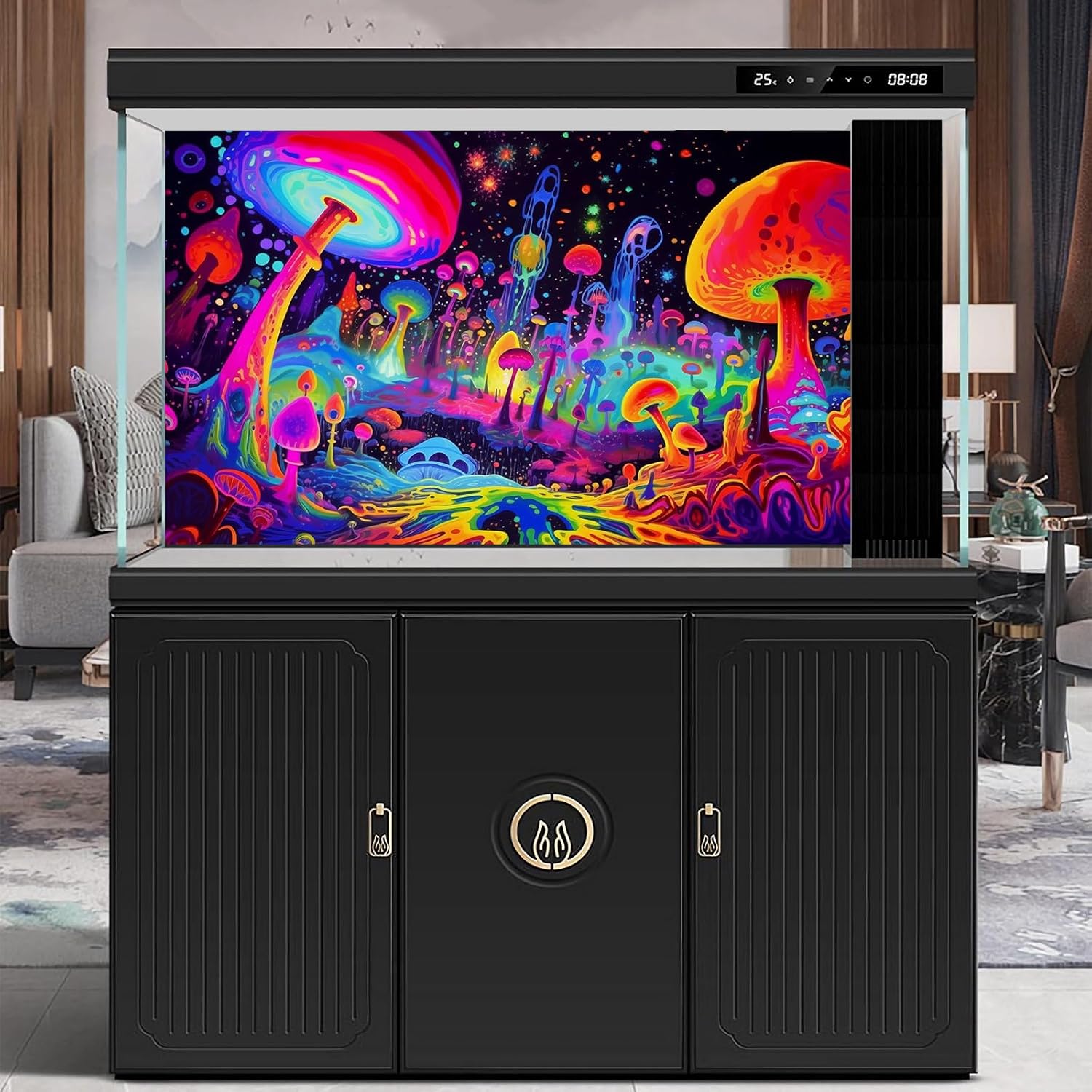 Fantasy Mushrooms Aquarium Background Abstract Mysterious Mushroom Landscape Terrarium Background Amazing Rainbow Mushrooms Theme Fish Tank Backdrop Poster Wallpaper Decorations Vinyl 48x24in