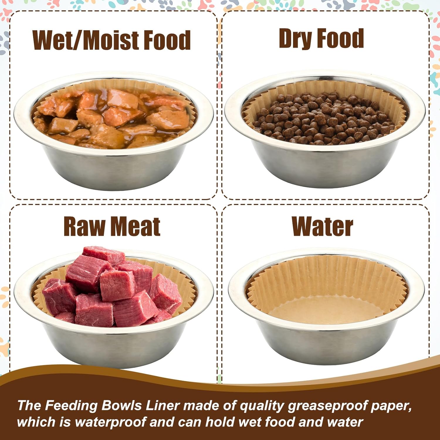 - Rich Quantity: there are 600 pieces of disposable pet bowl liners in kraft brown, abundant quantity can meet your pet's daily use and replacement needs; Please note that the package have liners only, bowls are not included