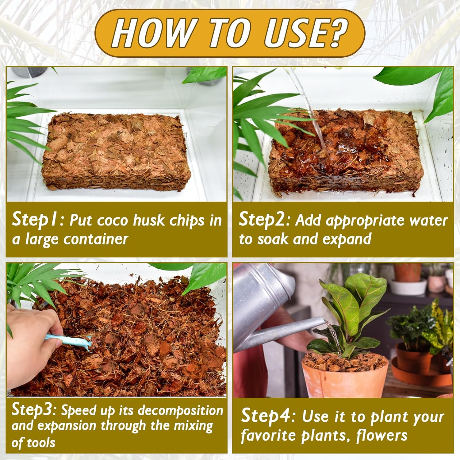 - ššš¬š² ššØ šš¬š šš§š šššØš«š: Our compressed coco bark is very easy to use and carry around. All you need to do is put them in a large container and soak them with the right amount of water to swell into loose coco chips to provide the best substrate for all types of plants