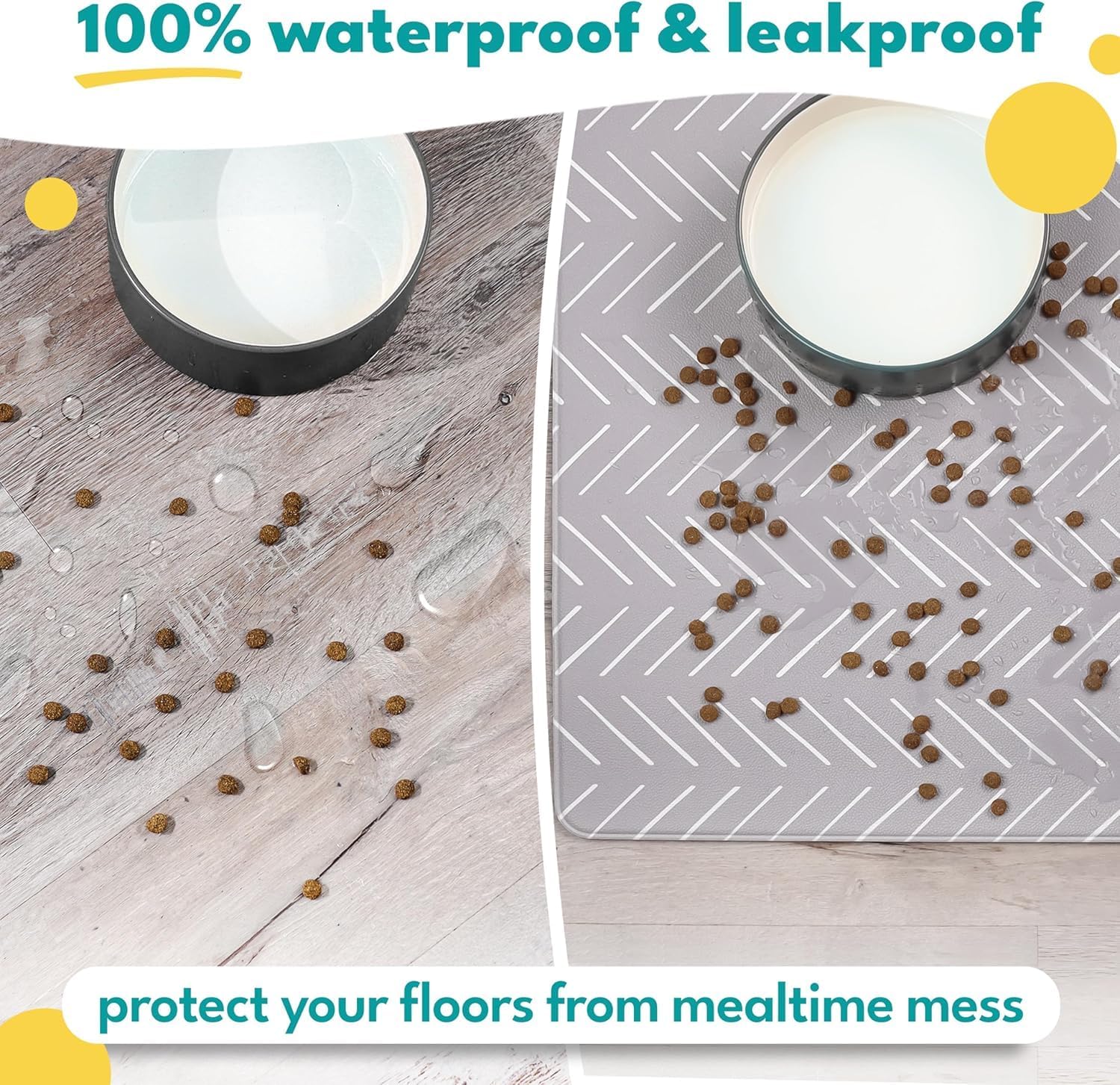 - MADE FOR PETS, DESIGNED FOR YOU β Our stylish dog food mat for bowls and water dishes blends seamlessly into your home dΓ©cor. Unlike typical pet feeding mats, our non-slip, waterproof dog placemat features modern designs that fit your space, keeping floors clean while looking great.