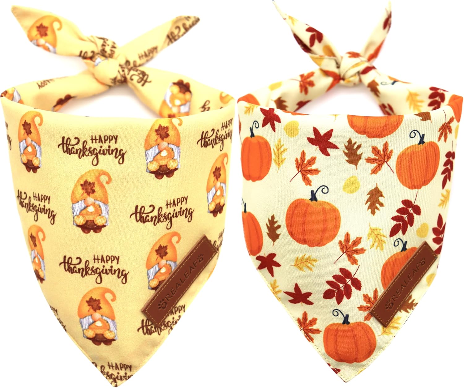 Realeaf Thanksgiving Dog Bandanas 2 Pack, Pumpkins and Happy Thanksgiving Pet Scarf for Boy and Girl, Premium Durable Fabric, Reversible Holiday Bandana for Medium and Large Dogs Pets (Large)