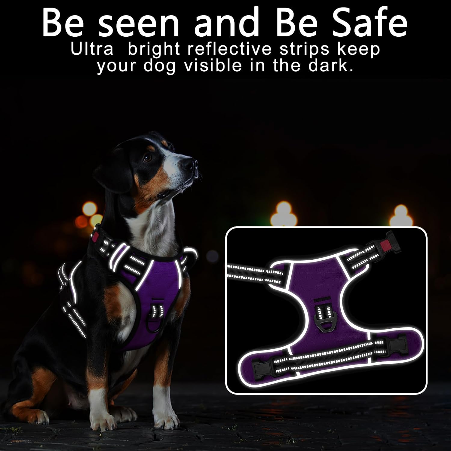 Timos Dog Harness Medium Sized, No Pull with Neck Lockable Snap,No Choke Front Clip Dog Reflective Harness,Adjustable Metal Rings 3 Buckles,Easy Control Handle for Medium Dogs Purple M
