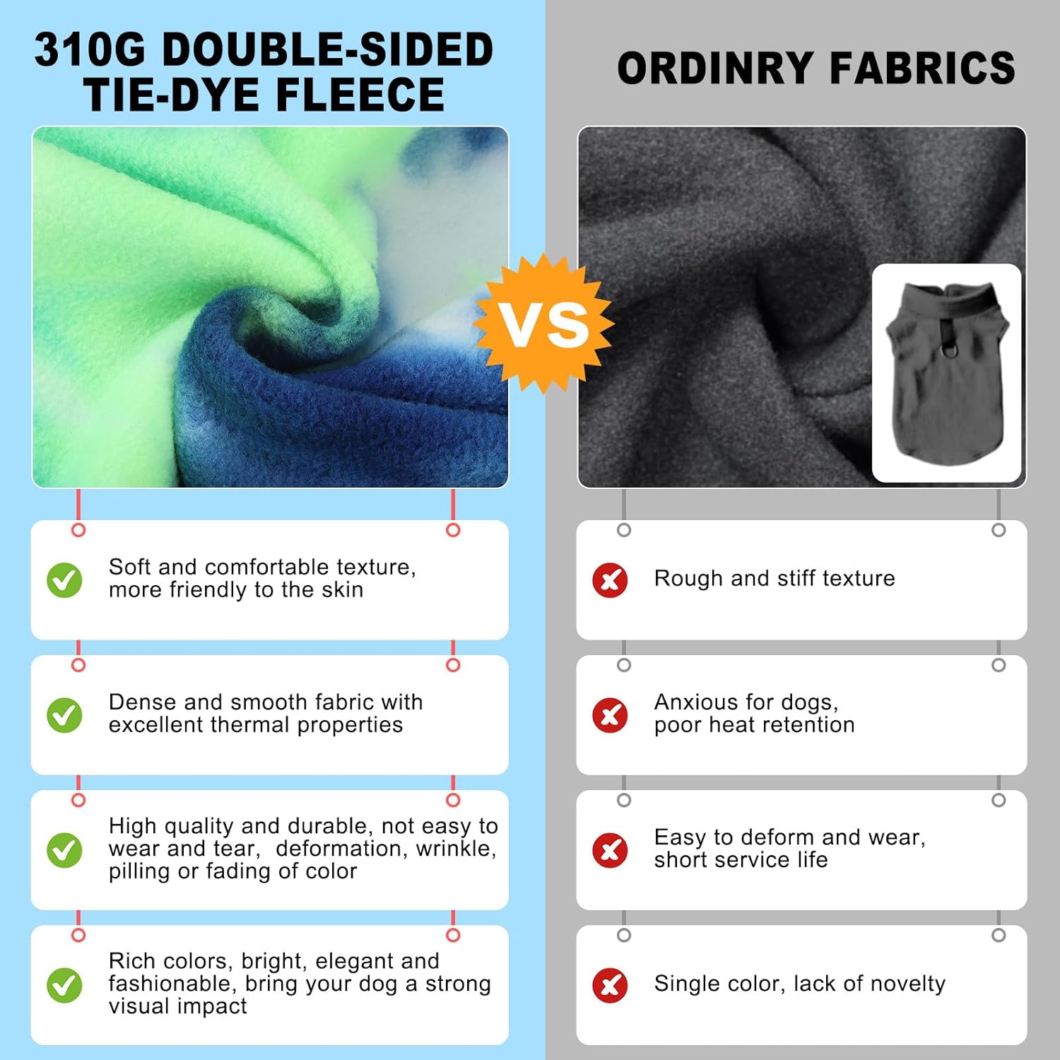 - Easy On Dog Clothes: Pull-on design with stretchy neck and leg openings makes dressing effortless. Soft V-neck buttons prevent fur snags, while the lightweight construction won't overwhelm sensitive dogs. Each dog hoodie features vibrant, fade-resistant tie-dye patterns for standout style. Perfect for holiday photos or daily walks, these dog clothes maintain color through repeated washing and wear