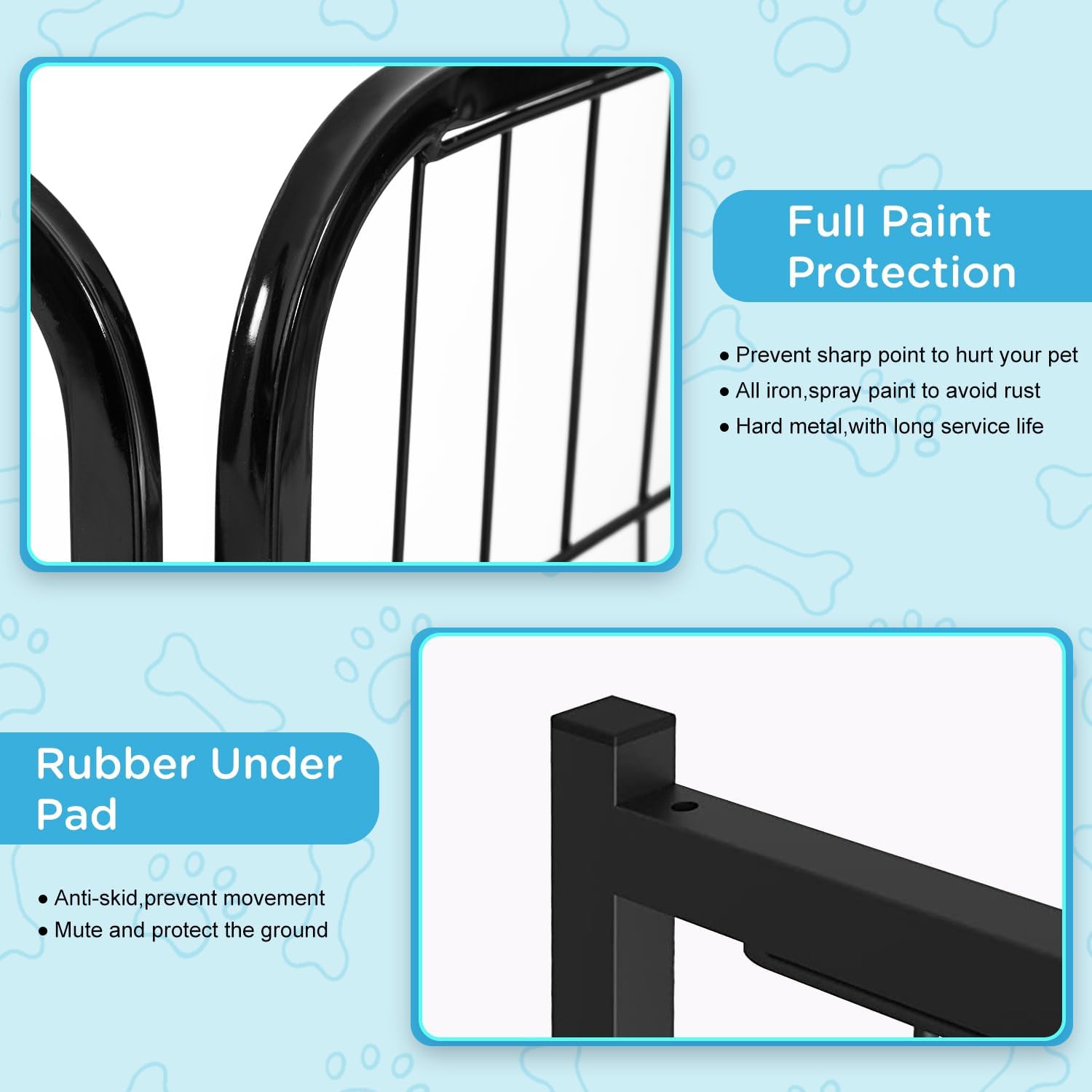 - ✔【A LARGE SECURE AREA】Our puppy playpen is great and keeps your pets safe from others, plenty of room for your pets and the sides of dog playpen are tall enough for you to reach into the enclosure. Have peace of mind to contain your pet within the enclosure. You can connect more pet playpen together to cover a larger area. puppy playpen dog playpen pet playpen