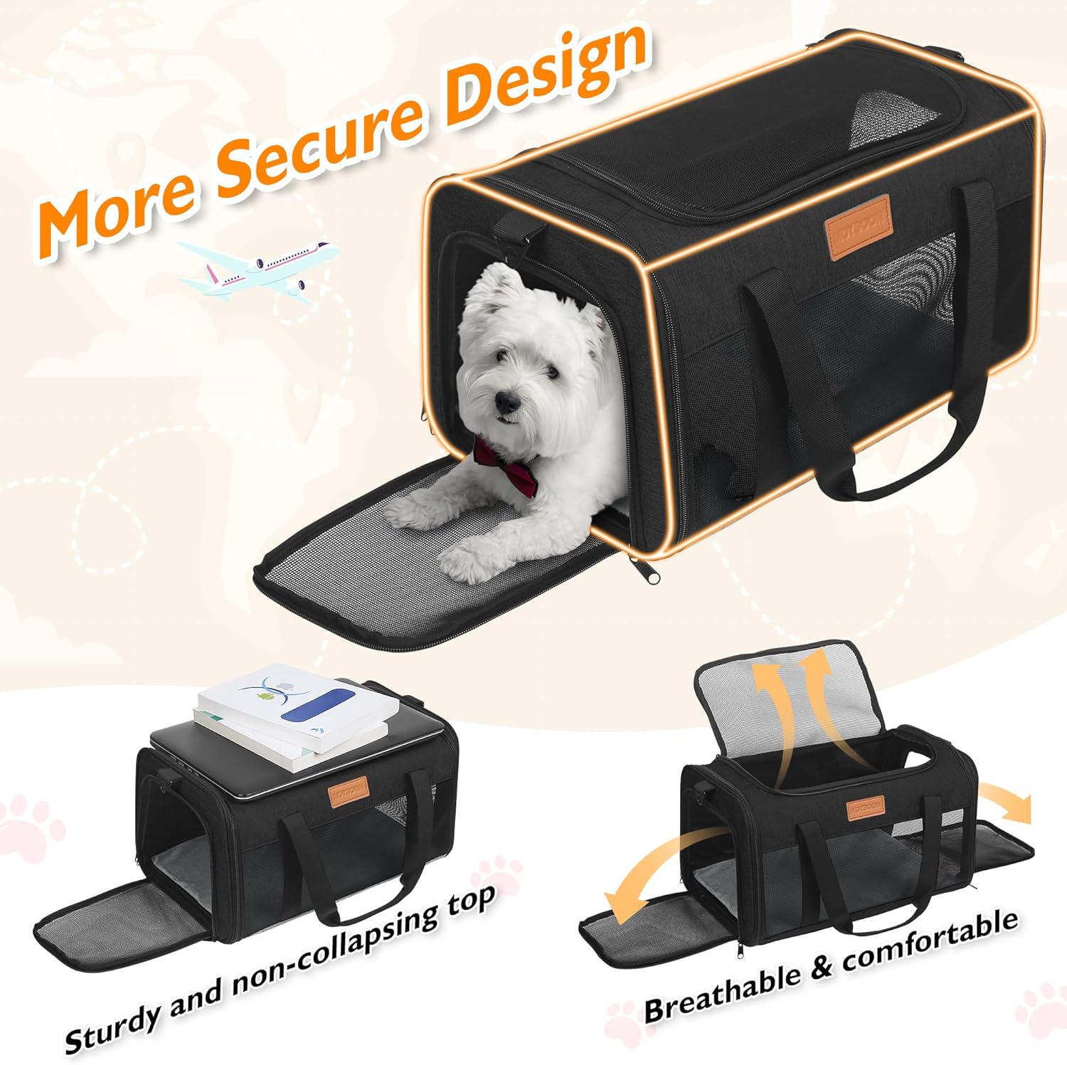 PETUX TSA Approved Pet Carrier in Cabin, 17"x11"x9.5" Soft Cat Carriers for Small Cats up to 12 lb, Top-Open Portable Dog Carrier with Litter Box and Anti-Scratch Mesh for Puppy up to 10 lb (Black)