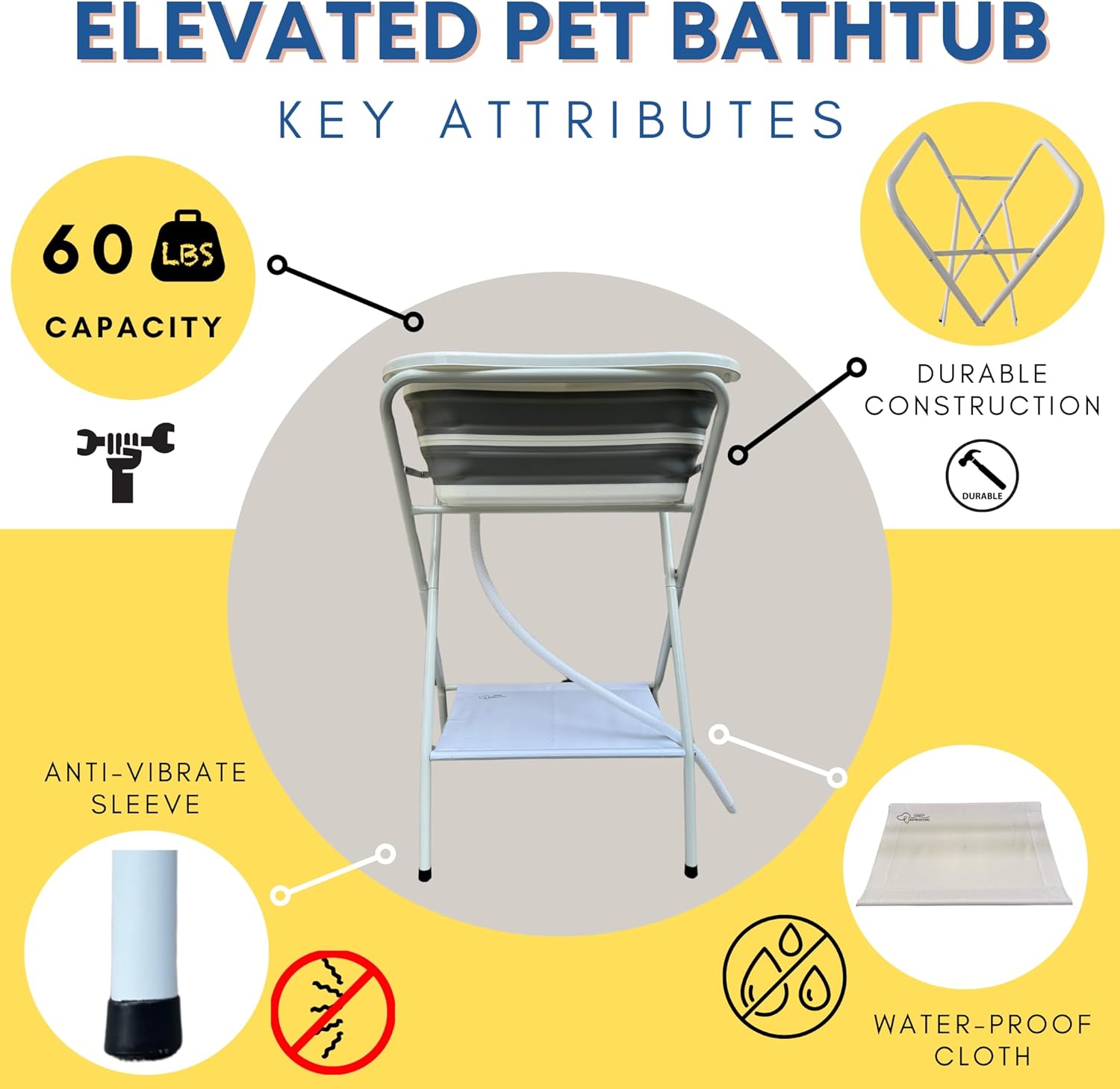 - SAFETY FEATURE: With Safety Belt included, this will ensure your pet stays safe and secure during bath time or grooming. Also, the safety straps will help to secure the bathtub with the frame while your pet is in wash.