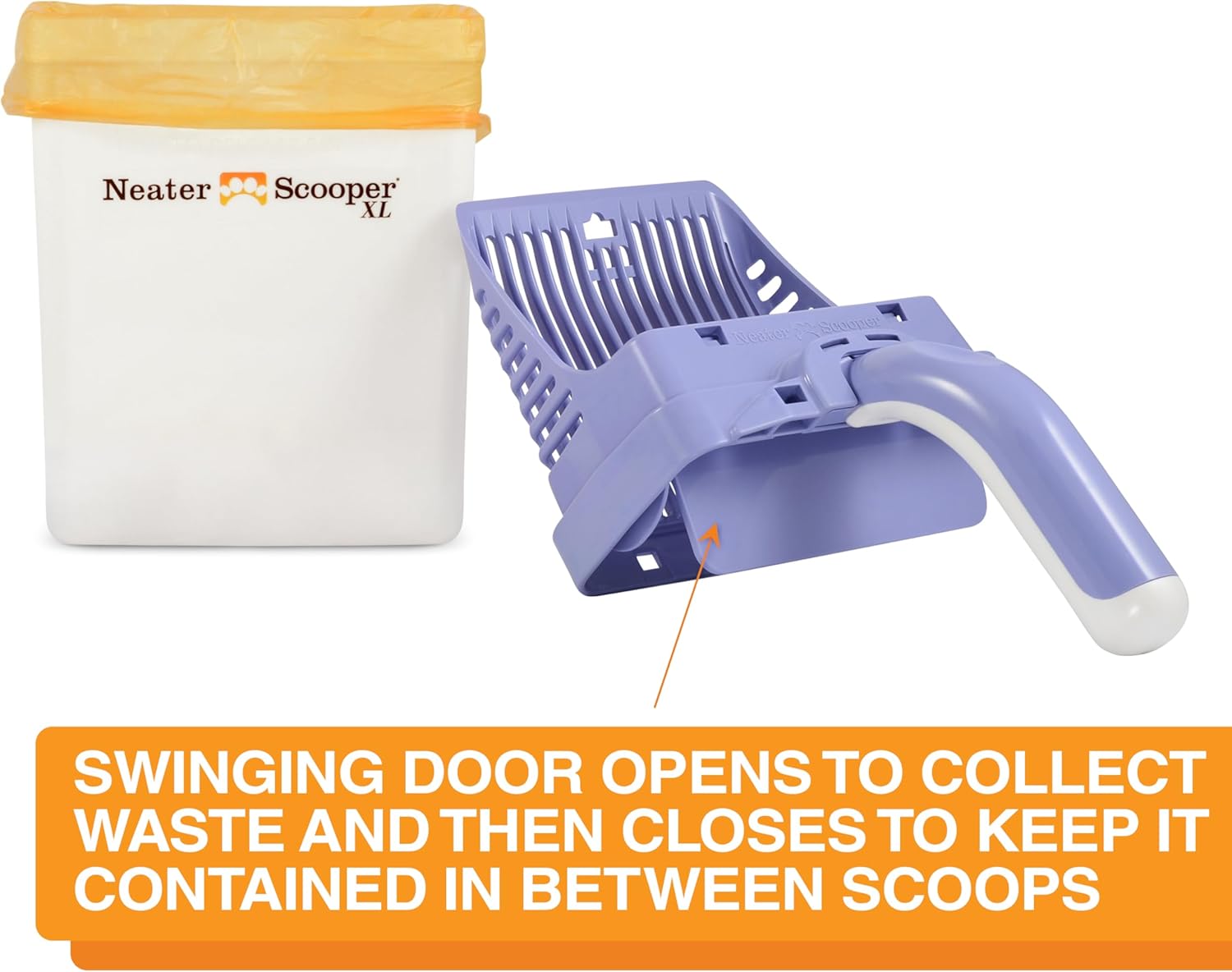 • REFILL BAGS & DISPENSER INCLUDED: Includes 15 lavender-scented refill bags and a dispenser that attaches to your litter box. The bags are larger than standard pet waste bags and custom-fit for the Neater Scooper XL. For refills, choose orange Neater Scooper XL refill bags for a perfect fit.