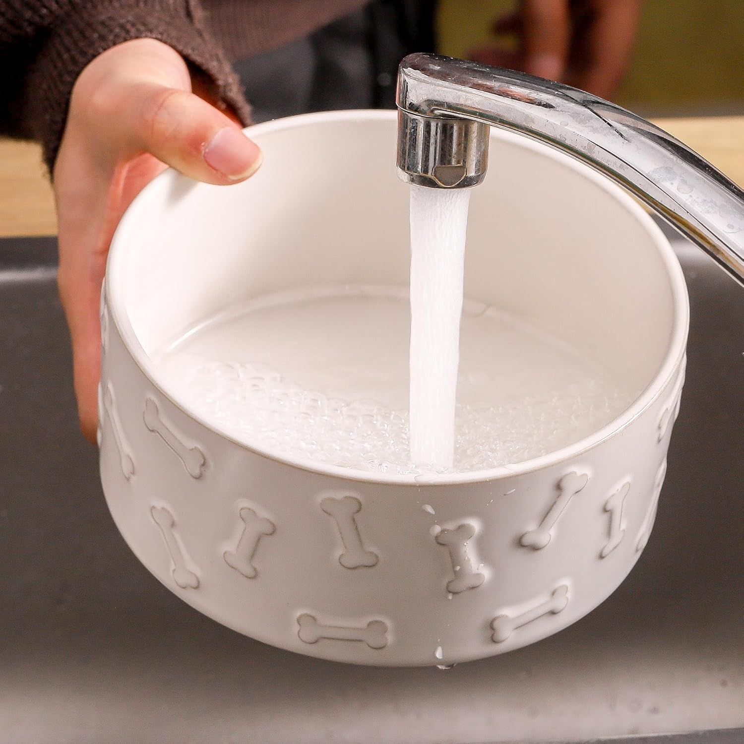 - Modern Design with Bone Pattern: Suitable height made it easier to feed your pet food and water, 6.1 inch ceramic dog food bowl is big enough for small and medium-sized dogs, large cat, rabbit.
