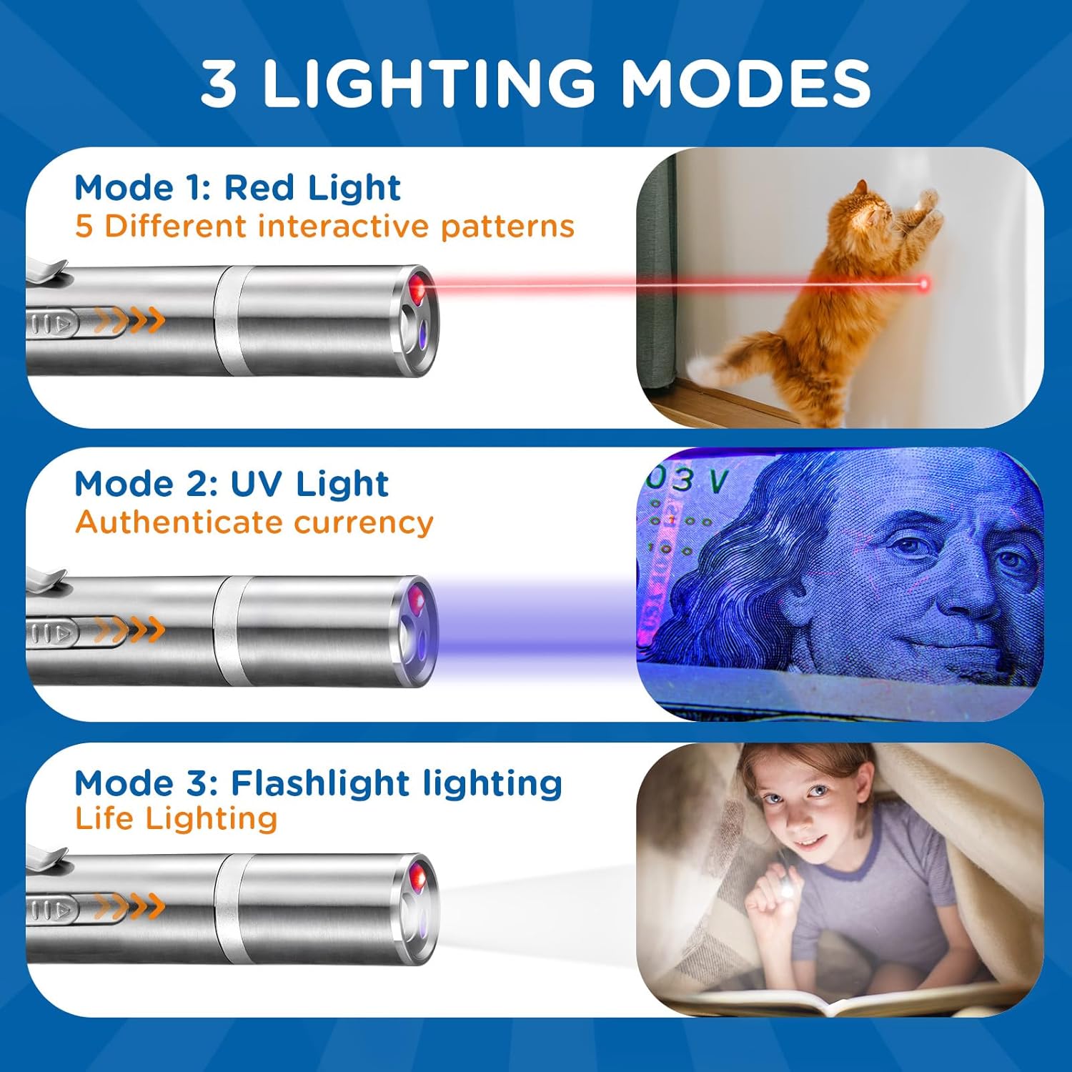 Cat Toy Pointer for Indoor, USB Rechargeable Toy, 3 Light Colors Cat Interactive Toys for Dogs, Cats, Pet Chase Toy for Fun Playing Training Exercise Indoors