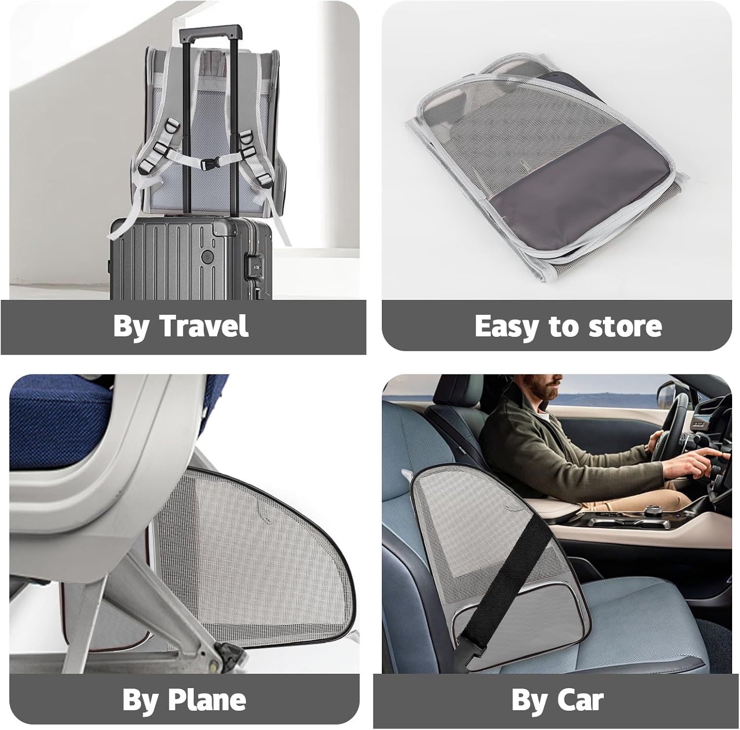 - Foldable and Portable: You can easily fold up your cat carrier backpacks when not in use and it will only take up very little space. This pet travel carrier can be conveniently worn over the shoulders, secured in a vehicle with a seat belt, positioned on your luggage, or carried using the top handle