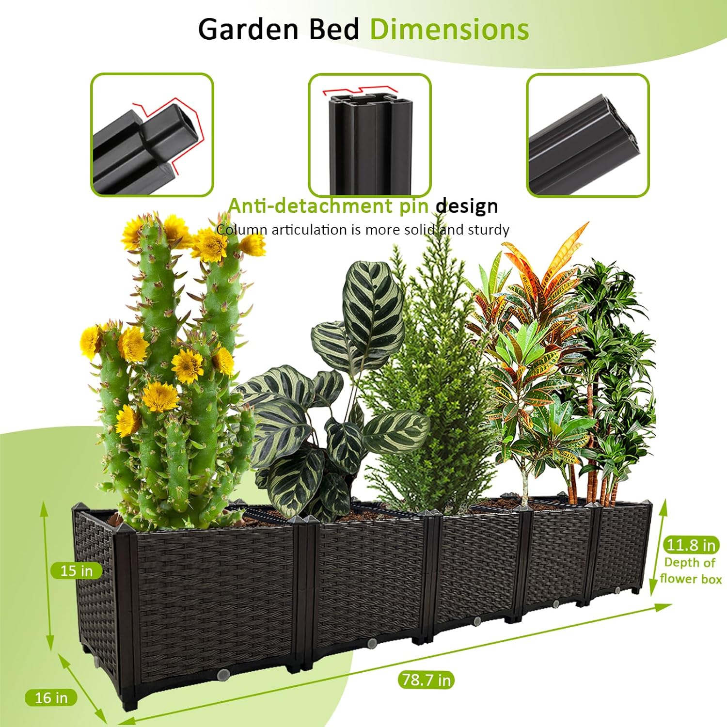 - 🌻【Durable Outdoor Growth Box】Our elevated planter boxes are made of reinforced PP material with a rattan pattern that is lightweight, high load bearing and reusable.