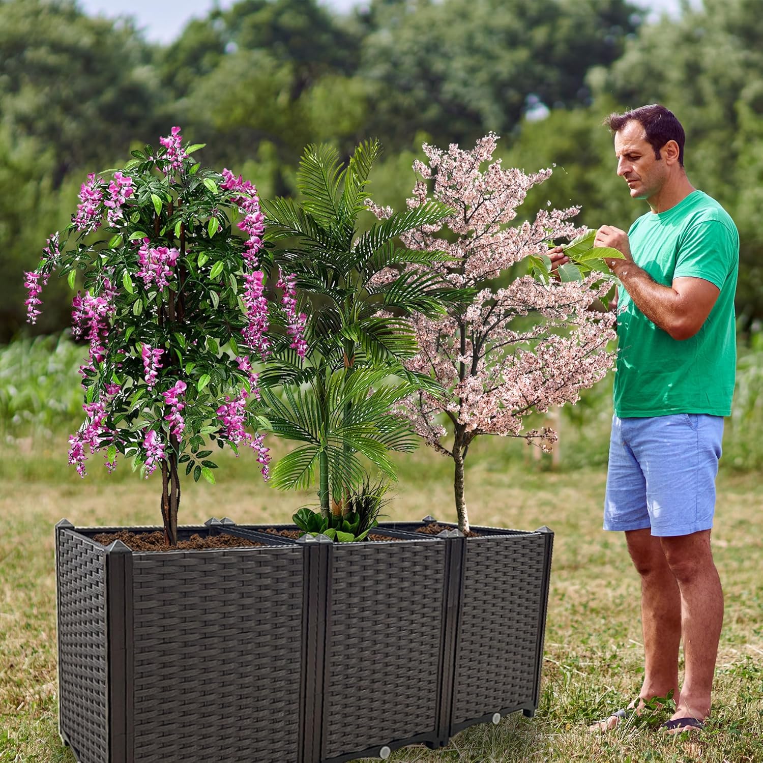 - 🌻【Durable Outdoor Growth Box】Our elevated planter boxes are made of reinforced PP material with a rattan pattern that is lightweight, high load bearing and reusable.
