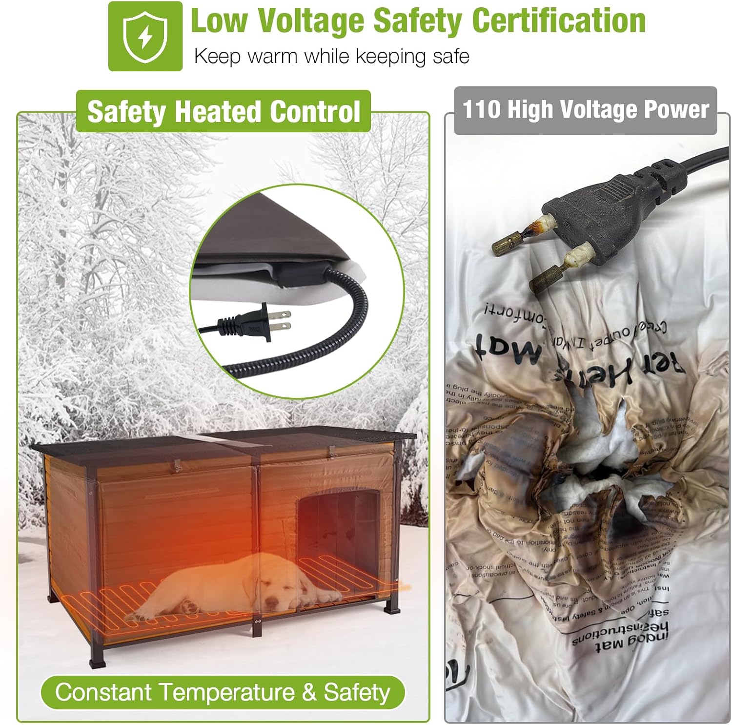 - Keeps Your Pet Warm in Extreme Cold: Features a solid wood dog house combined with an insulated liner and a built-in heater to maintain warmth even in subzero temperatures, ensuring your dog stays comfortable and safe