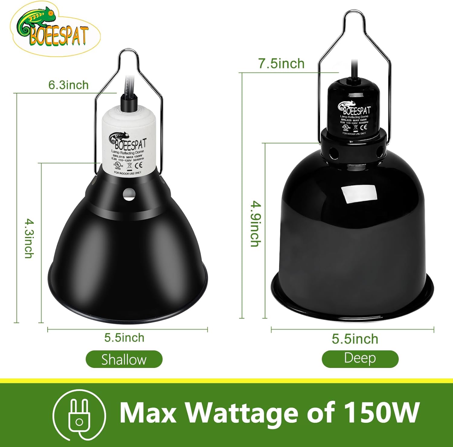 - 【Premium Aluminum Construction】: BOEESPAT's 5.5" Dia. Deep-Barreled Reflecting Dome Lamp Fixture is crafted from high-quality aluminum alloy. The inner surface is precisely polished, enhancing UVA and UVB output while ensuring excellent heat reflection and brightness. With a 1mm thick lamp wall, it offers remarkable heat resistance and deformation prevention.