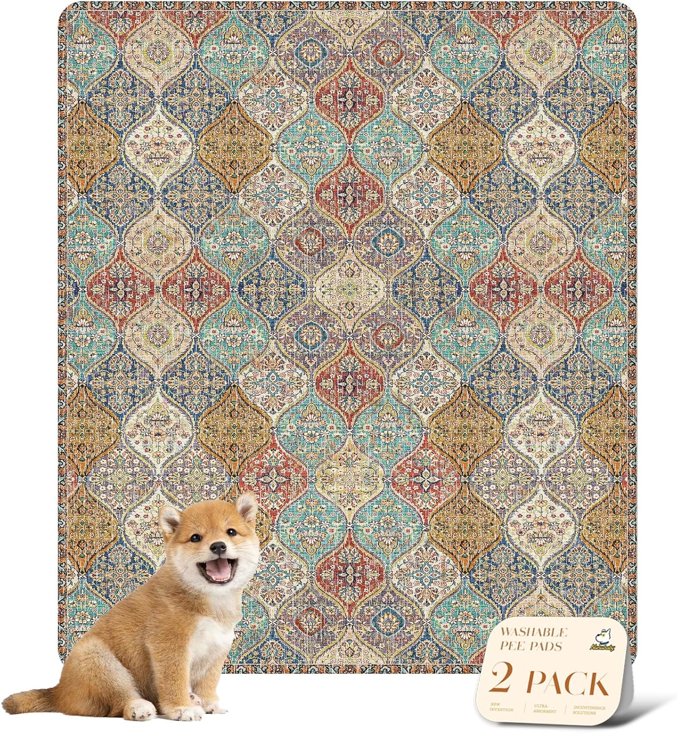 nunubaby Washable Pee Pads for Dogs, Stylish, Non-Slip and Leak-Proof Pee Pads. Reusable Potty Pads for Dogs for Crates and Floors.(Cream/Multi, 31" x36" )