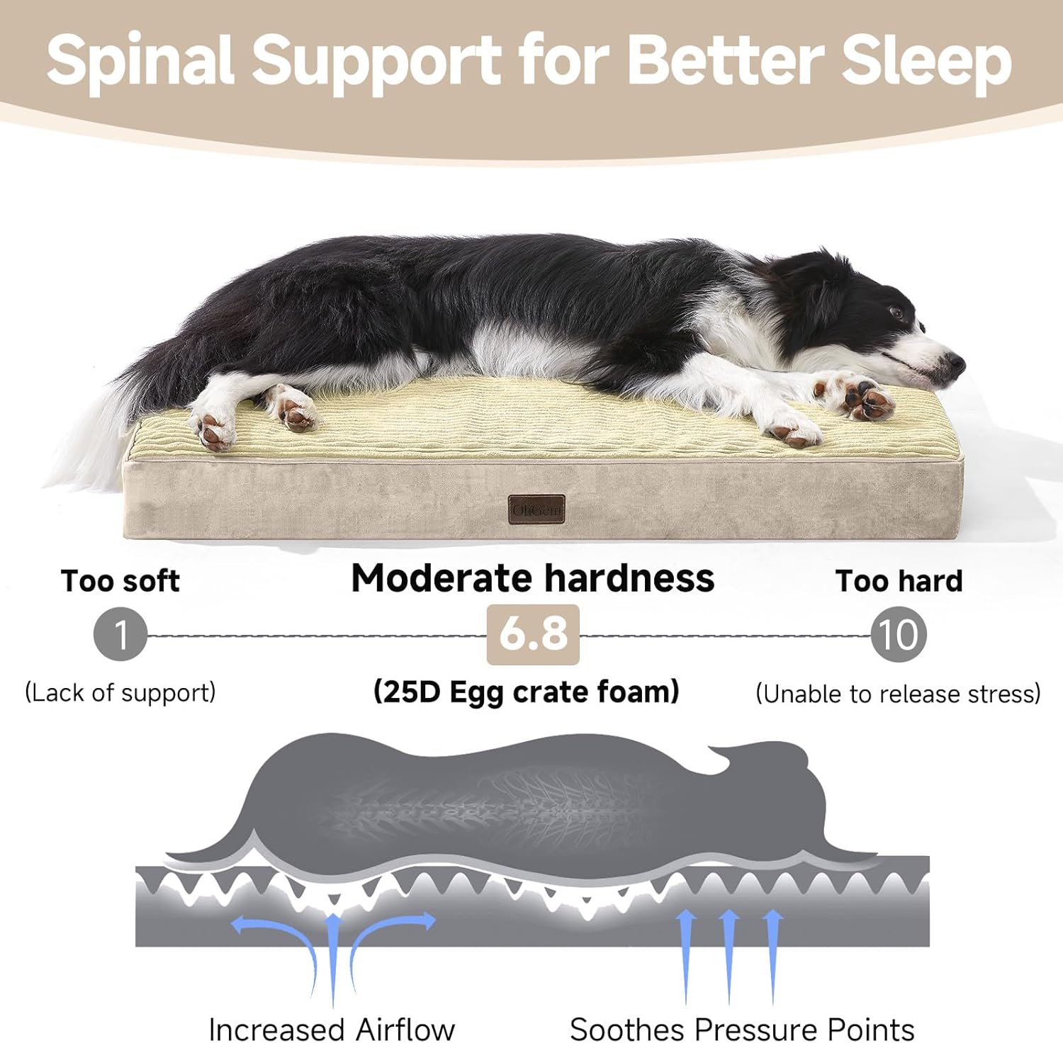OhGeni Orthopedic Waterproof & Machine Washable Dog Bed for Medium Large Pets, Suitable for Crates, Cat Mat with 25D Egg Crate Foam, Removable Cover & Invisible Zipper, 35 Inches(Khaki)