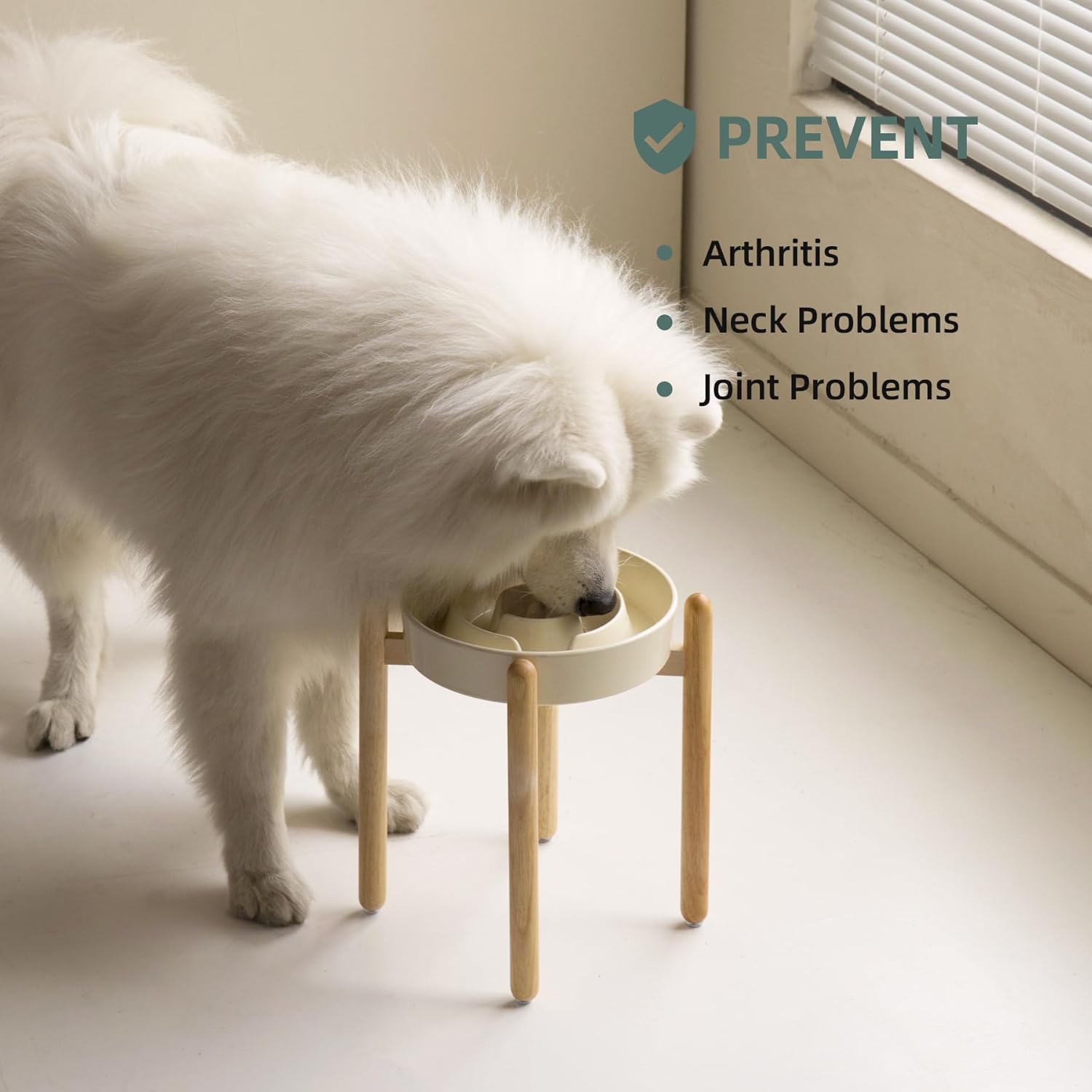 - Rasied Wooden Stand: Raised ceramic dog bowls provide dogs with correct eating posture,improved reducing bloating and neck strain with dogs,and prevents indigestion problem.